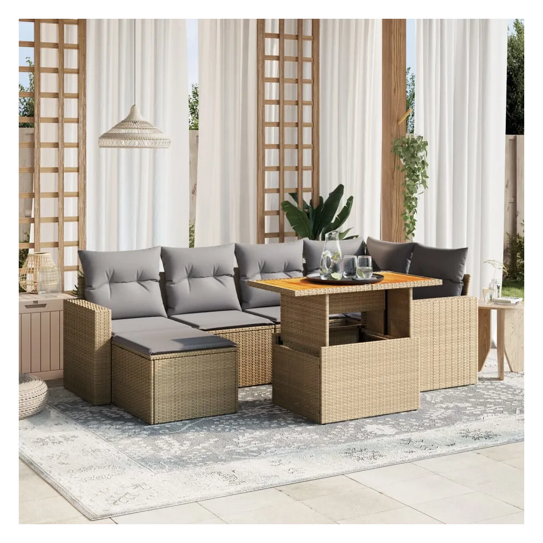Cet ensemble de canapés de jardin est le complément parfait de votre arrière-cour, terrasse ou patio, offrant un espace confortable et accueillant pour discuter avec la famille et les amis ou simplement se détendre et profiter de l'extérieur. Matériau durable : la résine tressée, également connue sous le nom de poly rotin, est un matériau synthétique solide et nécessitant peu d'entretien qui ressemble au rotin naturel. Il est léger, facile à nettoyer et couramment utilisé pour les meubles d'extérieur en raison de sa durabilité et de ses propriétés de résistance aux intempéries.Dessus de table réglable : le dessus de table peut être soulevé pour rendre la table plus haute, ce qui transforme la table d'extérieur d'une table basse à une table de salle à manger. Elle est parfaite pour recevoir des invités ou prendre des repas à l'extérieur.Housse amovible et lavable : ces coussins de siège sont dotés de housses amovibles pour un lavage et un entretien faciles.Conception modulaire : cet ensemble de meubles d'extérieur a une conception modulaire, ce qui le rend complètement flexible et facile à déplacer, afin que vous puissiez créer un agencement de meubles d'extérieur personnalisé. Bon à savoir :Pour que vos meubles d'extérieur restent beaux, nous vous recommandons de les protéger avec une housse imperméable.