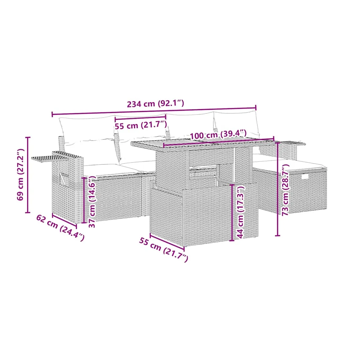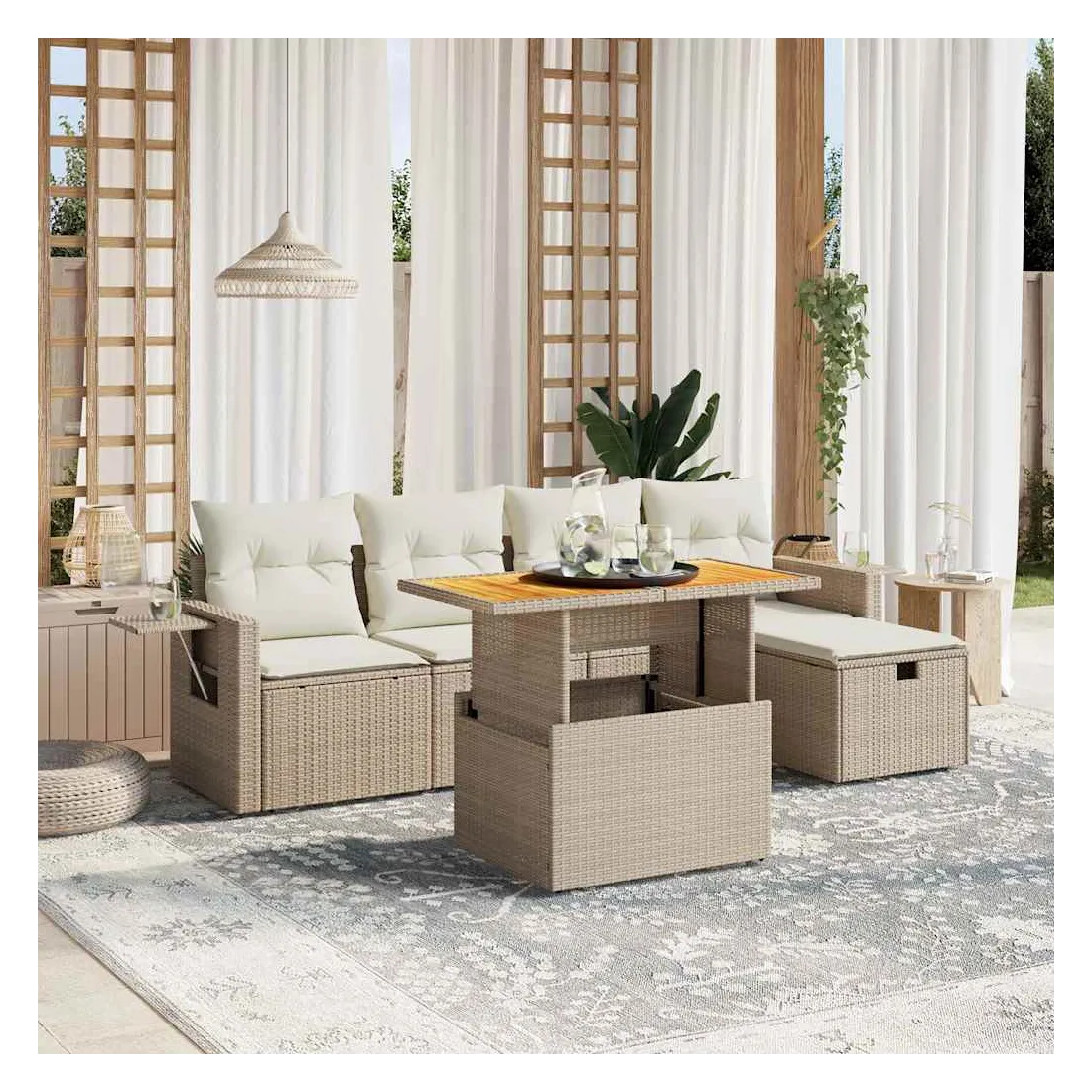 Cet ensemble de canapés de jardin est le complément parfait de votre arrière-cour, terrasse ou patio, offrant un espace confortable et accueillant pour discuter avec la famille et les amis ou simplement se détendre et profiter de l'extérieur. Matériau durable : la résine tressée, également connue sous le nom de poly rotin, est un matériau synthétique solide et nécessitant peu d'entretien qui ressemble au rotin naturel. Il est léger, facile à nettoyer et couramment utilisé pour les meubles d'extérieur en raison de sa durabilité et de ses propriétés de résistance aux intempéries.Dessus de table réglable : le dessus de table peut être soulevé pour rendre la table plus haute, ce qui transforme la table d'extérieur d'une table basse à une table de salle à manger. Elle est parfaite pour recevoir des invités ou prendre des repas à l'extérieur.Table d'appoint pratique : ce mobilier d'extérieur comprend une table d'appoint pliable avec un ressort à gaz sur les accoudoirs, offrant un endroit pratique pour garder vos essentiels à portée de main.Housse amovible et lavable : ces coussins de siège sont dotés de housses amovibles pour un lavage et un entretien faciles.Conception modulaire : cet ensemble de meubles d'extérieur a une conception modulaire, ce qui le rend complètement flexible et facile à déplacer, afin que vous puissiez créer un agencement de meubles d'extérieur personnalisé. Bon à savoir :Pour que vos meubles d'extérieur restent beaux, nous vous recommandons de les protéger avec une housse imperméable.