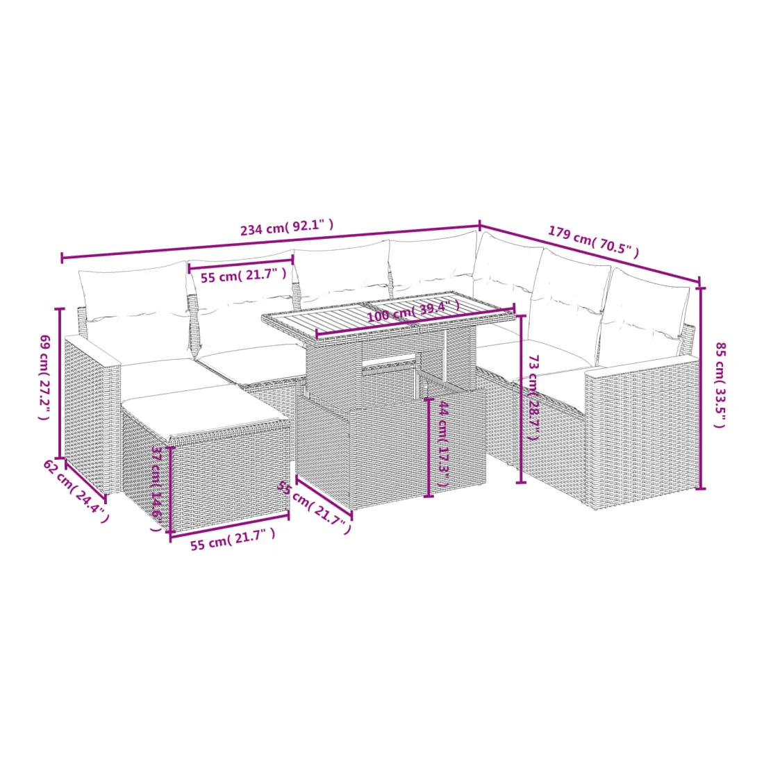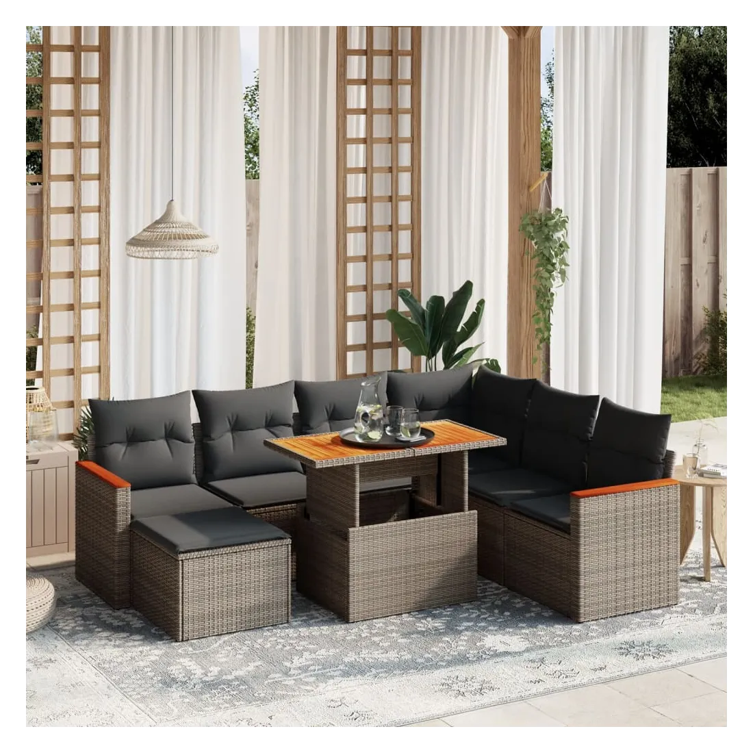 Cet ensemble de canapés de jardin est le complément parfait de votre arrière-cour, terrasse ou patio, offrant un espace confortable et accueillant pour discuter avec la famille et les amis ou simplement se détendre et profiter de l'extérieur. Matériau durable : la résine tressée, également connue sous le nom de poly rotin, est un matériau synthétique solide et nécessitant peu d'entretien qui ressemble au rotin naturel. Il est léger, facile à nettoyer et couramment utilisé pour les meubles d'extérieur en raison de sa durabilité et de ses propriétés de résistance aux intempéries.Dessus de table réglable : le dessus de table peut être soulevé pour rendre la table plus haute, ce qui transforme la table d'extérieur d'une table basse à une table de salle à manger. Elle est parfaite pour recevoir des invités ou prendre des repas à l'extérieur.Housse amovible et lavable : ces coussins de siège sont dotés de housses amovibles pour un lavage et un entretien faciles.Conception modulaire : cet ensemble de meubles d'extérieur a une conception modulaire, ce qui le rend complètement flexible et facile à déplacer, afin que vous puissiez créer un agencement de meubles d'extérieur personnalisé. Bon à savoir :Pour que vos meubles d'extérieur restent beaux, nous vous recommandons de les protéger avec une housse imperméable.