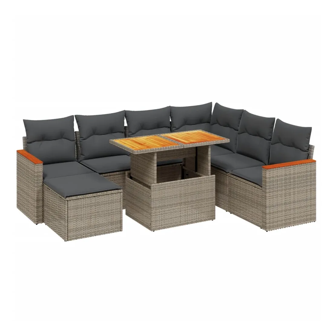 Salon de jardin 8 pcs avec coussins gris résine tressée