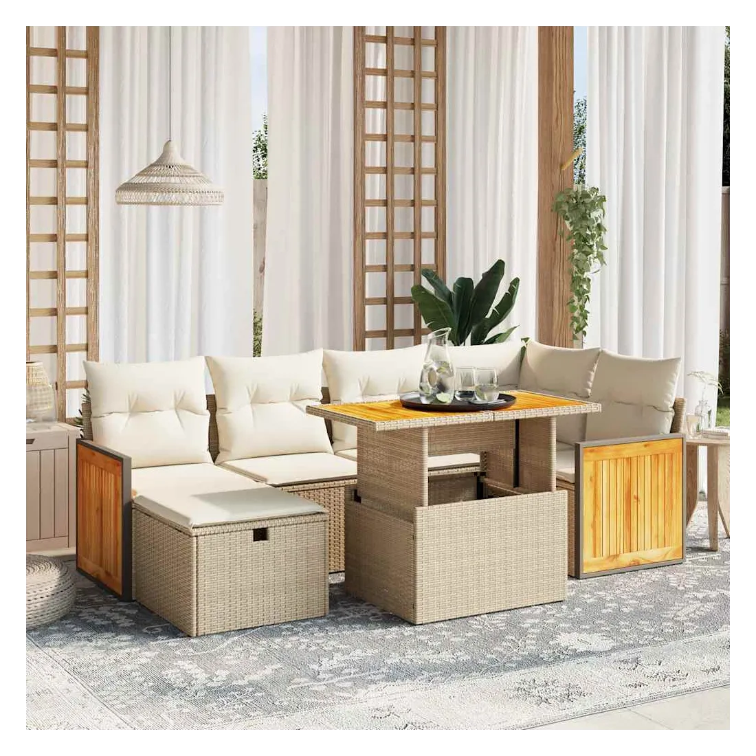 - Matériau : résine tressée, acier enduit de poudre, bois d'acacia massif avec finition à l'huile