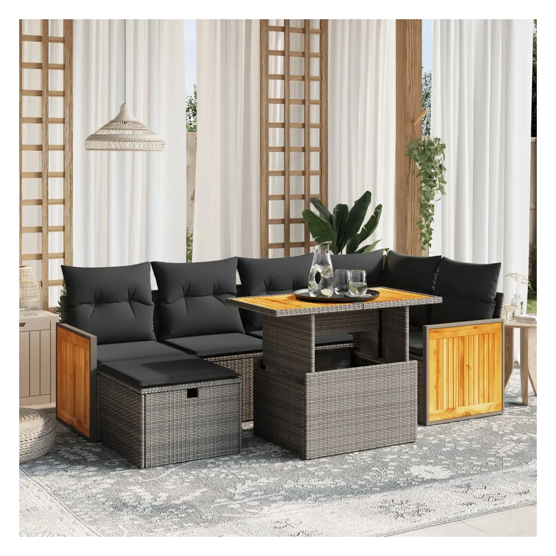 Cet ensemble de canapés de jardin est le complément parfait de votre arrière-cour, terrasse ou patio, offrant un espace confortable et accueillant pour discuter avec la famille et les amis ou simplement se détendre et profiter de l'extérieur. Matériau durable : la résine tressée, également connue sous le nom de poly rotin, est un matériau synthétique solide et nécessitant peu d'entretien qui ressemble au rotin naturel. Il est léger, facile à nettoyer et couramment utilisé pour les meubles d'extérieur en raison de sa durabilité et de ses propriétés de résistance aux intempéries.Dessus de table réglable : le dessus de table peut être soulevé pour rendre la table plus haute, ce qui transforme la table d'extérieur d'une table basse à une table de salle à manger. Elle est parfaite pour recevoir des invités ou prendre des repas à l'extérieur.Housse amovible et lavable : ces coussins de siège sont dotés de housses amovibles pour un lavage et un entretien faciles.Conception modulaire : cet ensemble de meubles d'extérieur a une conception modulaire, ce qui le rend complètement flexible et facile à déplacer, afin que vous puissiez créer un agencement de meubles d'extérieur personnalisé. Bon à savoir :Pour que vos meubles d'extérieur restent beaux, nous vous recommandons de les protéger avec une housse imperméable.
