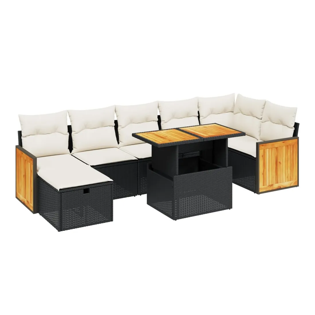 Salon de jardin 8 pcs avec coussins noir résine tressée