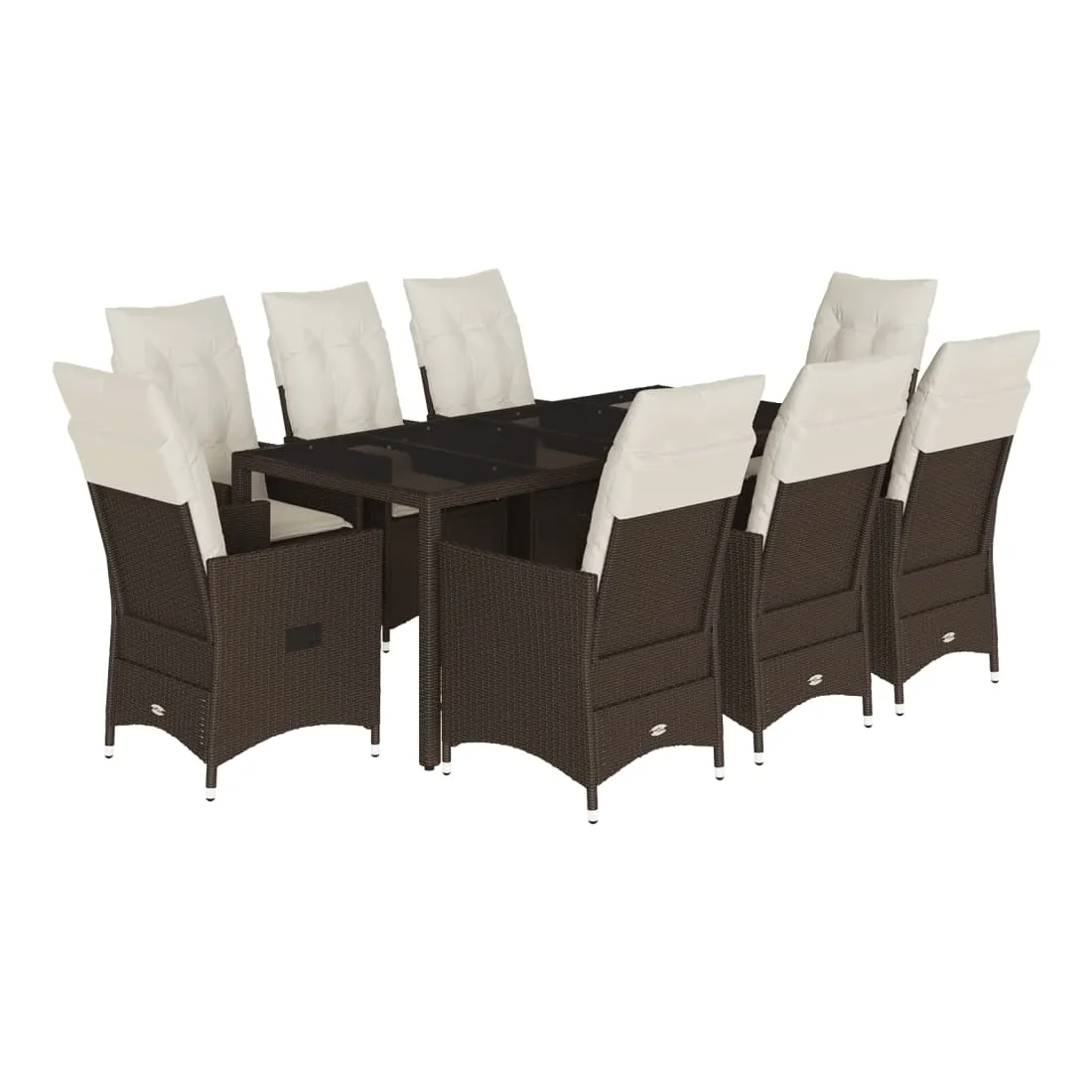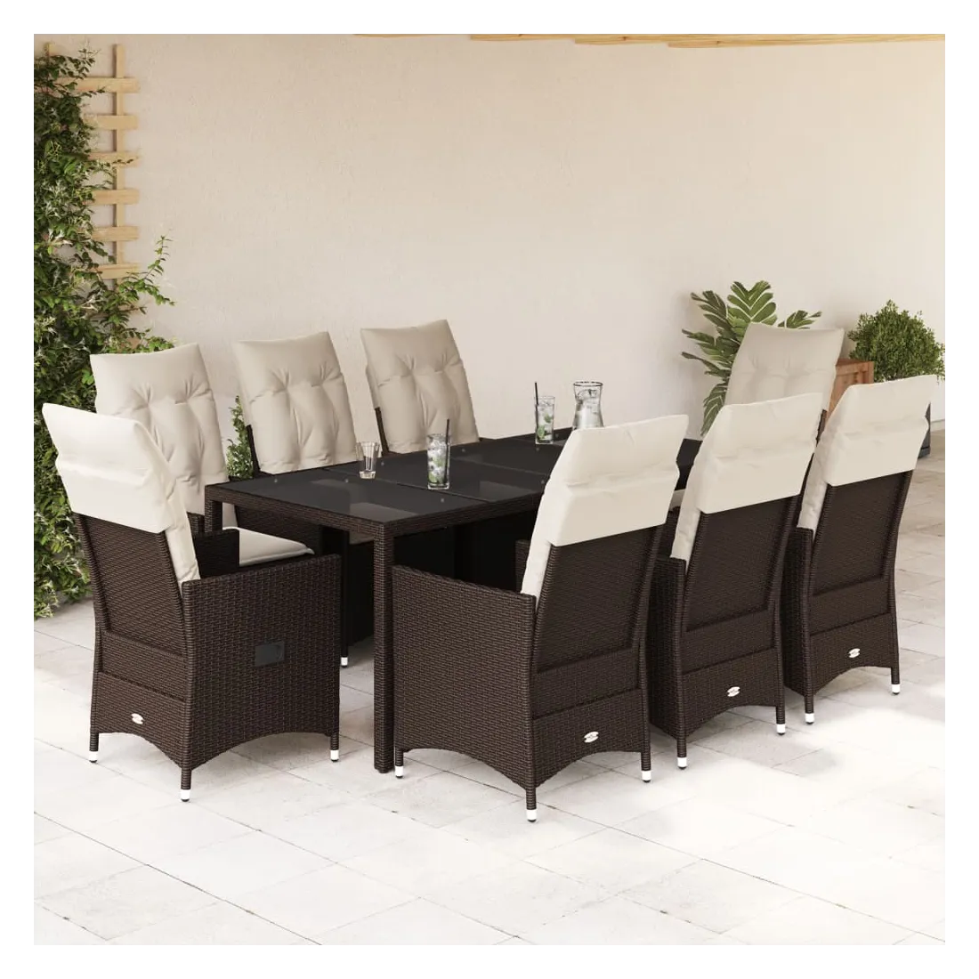 Cet ensemble de salle à manger de jardin est un excellent choix pour les repas en plein air ou pour vous détendre dans le jardin, dans l'arrière-cour ou sur la terrasse. Matériau durable : la résine tressée, également connue sous le nom de poly rotin, est un matériau synthétique solide et nécessitant peu d'entretien qui ressemble au rotin naturel. Il est léger, facile à nettoyer et couramment utilisé pour les meubles d'extérieur en raison de sa durabilité et de ses propriétés de résistance aux intempéries.Dossier réglable : ce siège de jardin est doté d'une poignée. Vous pouvez régler le dossier dans n'importe quelle position en tirant sur la poignée et le remettre rapidement dans sa position initiale.Dessus en verre : le dessus de la table d'extérieur est fabriqué en verre trempé solide et durable, ce qui le rend facile à nettoyer avec un chiffon humide et ajoute une touche d'élégance à votre espace extérieur.Expérience d'assise confortable : cet ensemble de meubles d'extérieur, doté de coussins épais, offre une expérience d'assise confortable.Housse amovible et lavable : ces coussins de siège sont dotés de housses amovibles pour un lavage et un entretien faciles. Les coussins de dossier ont un rabat à l'arrière pour une fixation facile aux dossiers. Bon à savoir :Pour que vos meubles d'extérieur restent beaux, nous vous recommandons de les protéger avec une housse imperméable.