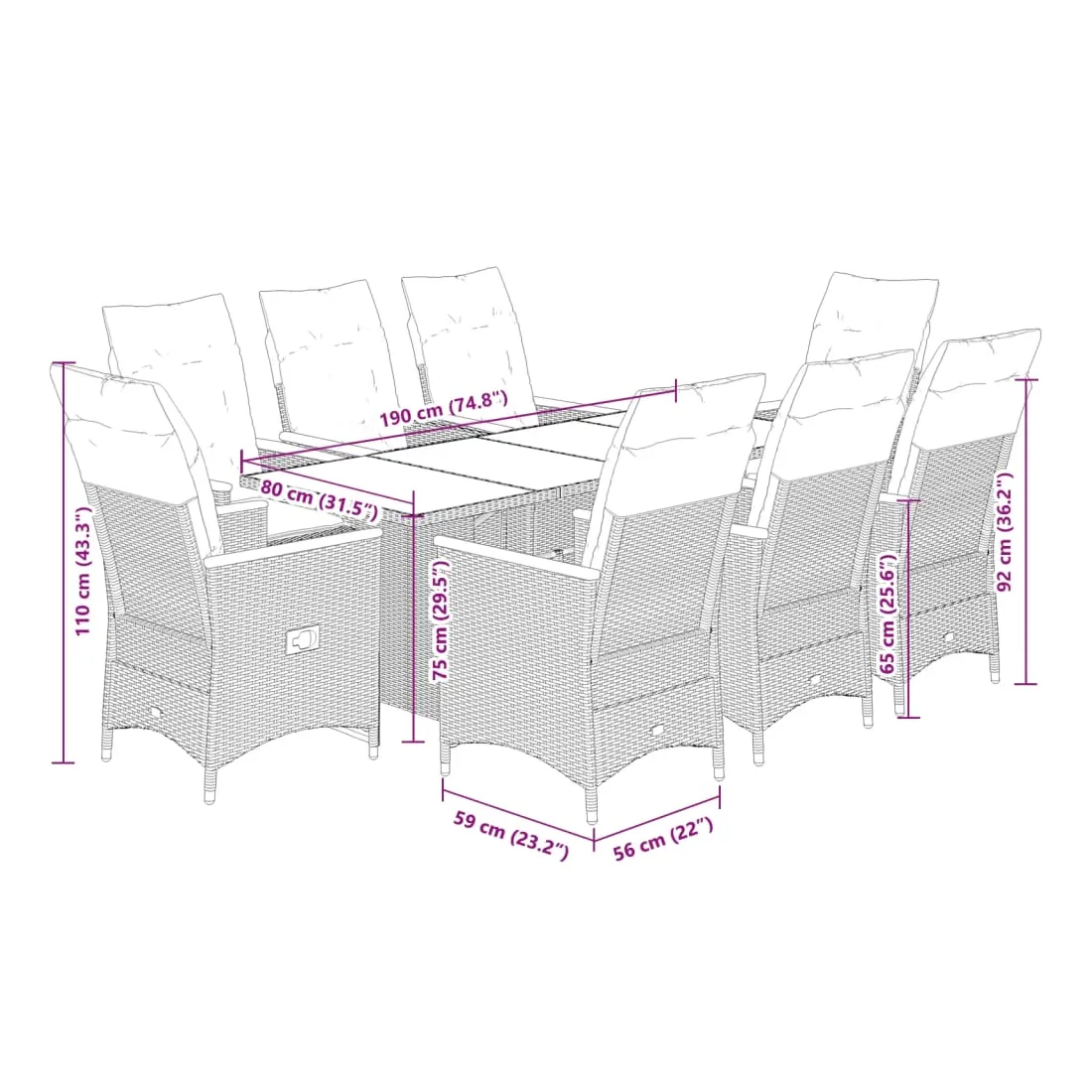 - Dimensions : 190 x 80 x 75 cm (L x l x H)