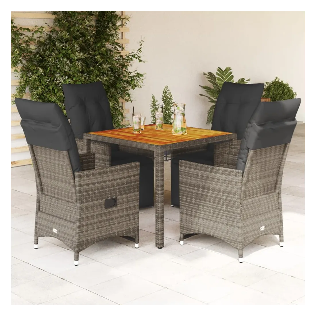 Savourez un café ou discutez avec votre famille et vos amis dans le jardin, l'arrière-cour ou sur le balcon avec cet ensemble de bistro confortable ! Matériau durable : la résine tressée, également connue sous le nom de poly rotin, est un matériau synthétique solide et nécessitant peu d'entretien qui ressemble au rotin naturel. Il est léger, facile à nettoyer et couramment utilisé pour les meubles d'extérieur en raison de sa durabilité et de ses propriétés de résistance aux intempéries.Dossier et repose-pied réglables : ce siège de jardin est doté d'une poignée. Vous pouvez régler le dossier et le repose-pied dans n'importe quelle position en tirant sur la poignée, et le remettre rapidement dans sa position initiale.Expérience d'assise confortable : ce mobilier d'extérieur, doté de coussins épais, offre une expérience d'assise confortable.Housse amovible et lavable : ces coussins de siège sont dotés de housses amovibles pour un lavage et un entretien faciles. Les coussins de dossier ont un rabat à l'arrière pour une fixation facile aux dossiers.Dessus stable et facile à nettoyer : cette table de jardin a un dessus en bois d'acacia robuste, durable et facile à nettoyer avec un chiffon humide. Bon à savoir :Pour que vos meubles d'extérieur restent beaux, nous vous recommandons de les protéger avec une housse imperméable.