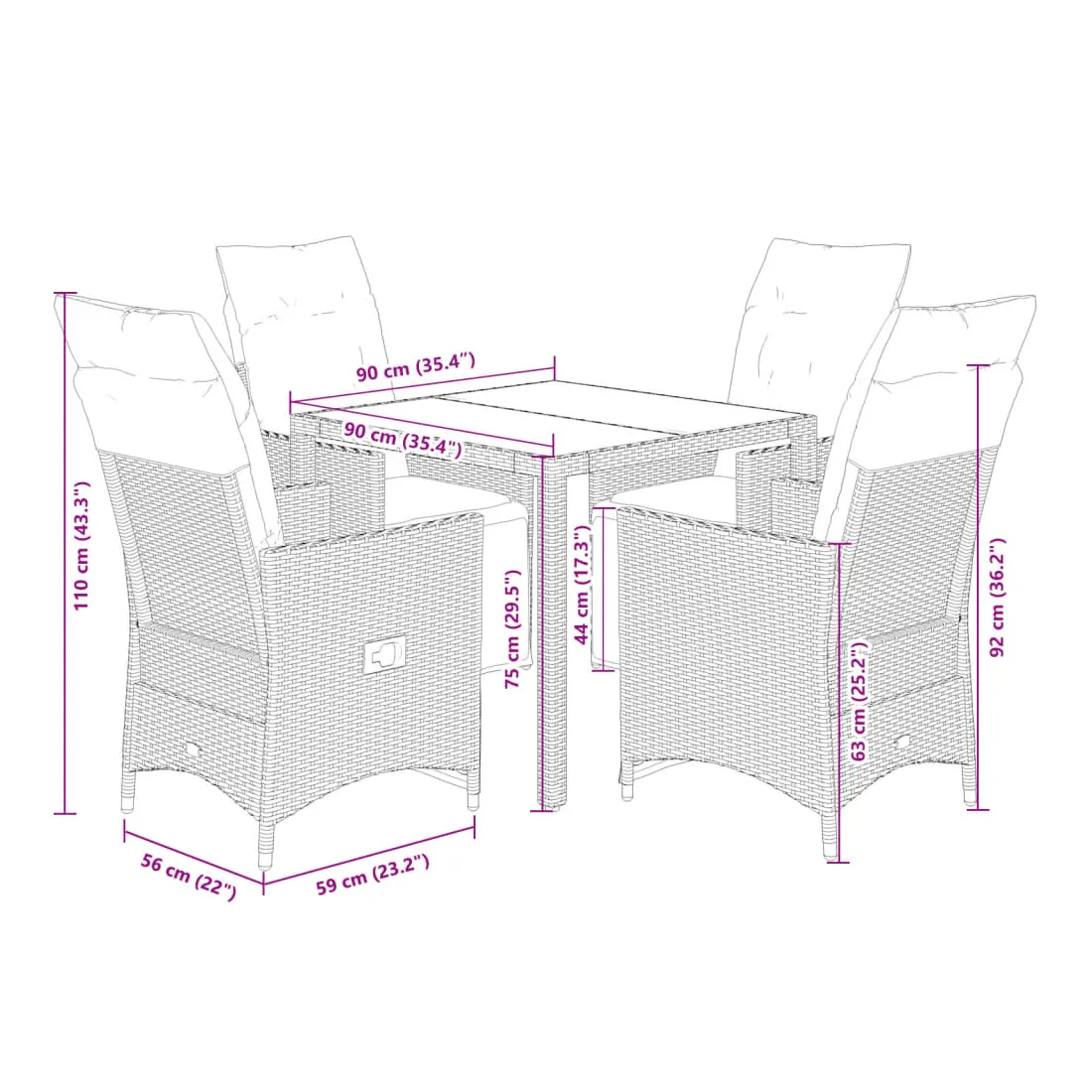 - Dimensions : 90 x 90 x 75 cm (L x l x H)