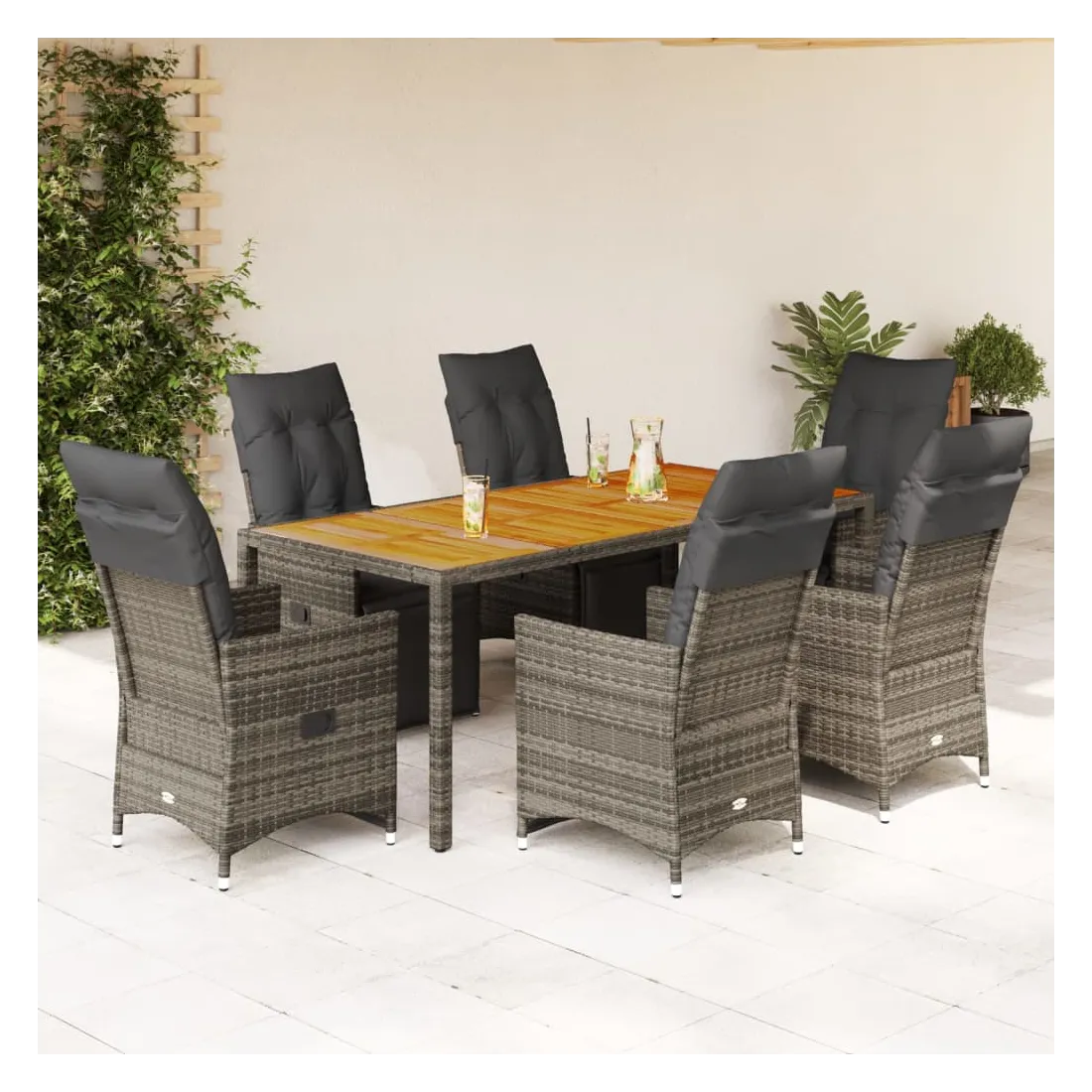Savourez un café ou discutez avec votre famille et vos amis dans le jardin, l'arrière-cour ou sur le balcon avec cet ensemble de bistro confortable ! Matériau durable : la résine tressée, également connue sous le nom de poly rotin, est un matériau synthétique solide et nécessitant peu d'entretien qui ressemble au rotin naturel. Il est léger, facile à nettoyer et couramment utilisé pour les meubles d'extérieur en raison de sa durabilité et de ses propriétés de résistance aux intempéries.Dossier et repose-pied réglables : ce siège de jardin est doté d'une poignée. Vous pouvez régler le dossier et le repose-pied dans n'importe quelle position en tirant sur la poignée, et le remettre rapidement dans sa position initiale.Expérience d'assise confortable : ce mobilier d'extérieur, doté de coussins épais, offre une expérience d'assise confortable.Housse amovible et lavable : ces coussins de siège sont dotés de housses amovibles pour un lavage et un entretien faciles. Les coussins de dossier ont un rabat à l'arrière pour une fixation facile aux dossiers.Dessus stable et facile à nettoyer : cette table de jardin a un dessus en bois d'acacia robuste, durable et facile à nettoyer avec un chiffon humide. Bon à savoir :Pour que vos meubles d'extérieur restent beaux, nous vous recommandons de les protéger avec une housse imperméable.