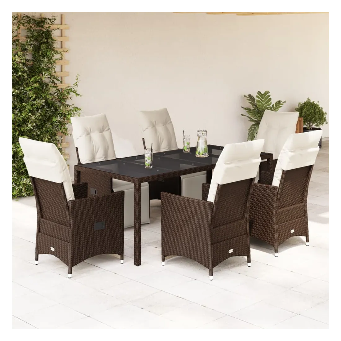 Savourez un café ou discutez avec votre famille et vos amis dans le jardin, l'arrière-cour ou sur le balcon avec cet ensemble de bistro confortable ! Matériau durable : la résine tressée, également connue sous le nom de poly rotin, est un matériau synthétique solide et nécessitant peu d'entretien qui ressemble au rotin naturel. Il est léger, facile à nettoyer et couramment utilisé pour les meubles d'extérieur en raison de sa durabilité et de ses propriétés de résistance aux intempéries.Dossier et repose-pied réglables : ce siège de jardin est doté d'une poignée. Vous pouvez régler le dossier et le repose-pied dans n'importe quelle position en tirant sur la poignée, et le remettre rapidement dans sa position initiale.Expérience d'assise confortable : ce mobilier d'extérieur, doté de coussins épais, offre une expérience d'assise confortable.Housse amovible et lavable : ces coussins de siège sont dotés de housses amovibles pour un lavage et un entretien faciles. Les coussins de dossier ont un rabat à l'arrière pour une fixation facile aux dossiers.Dessus en verre : le dessus de la table d'extérieur est fabriqué en verre trempé solide et durable, ce qui le rend facile à nettoyer avec un chiffon humide et ajoute une touche d'élégance à votre espace extérieur. Bon à savoir :Pour que vos meubles d'extérieur restent beaux, nous vous recommandons de les protéger avec une housse imperméable.