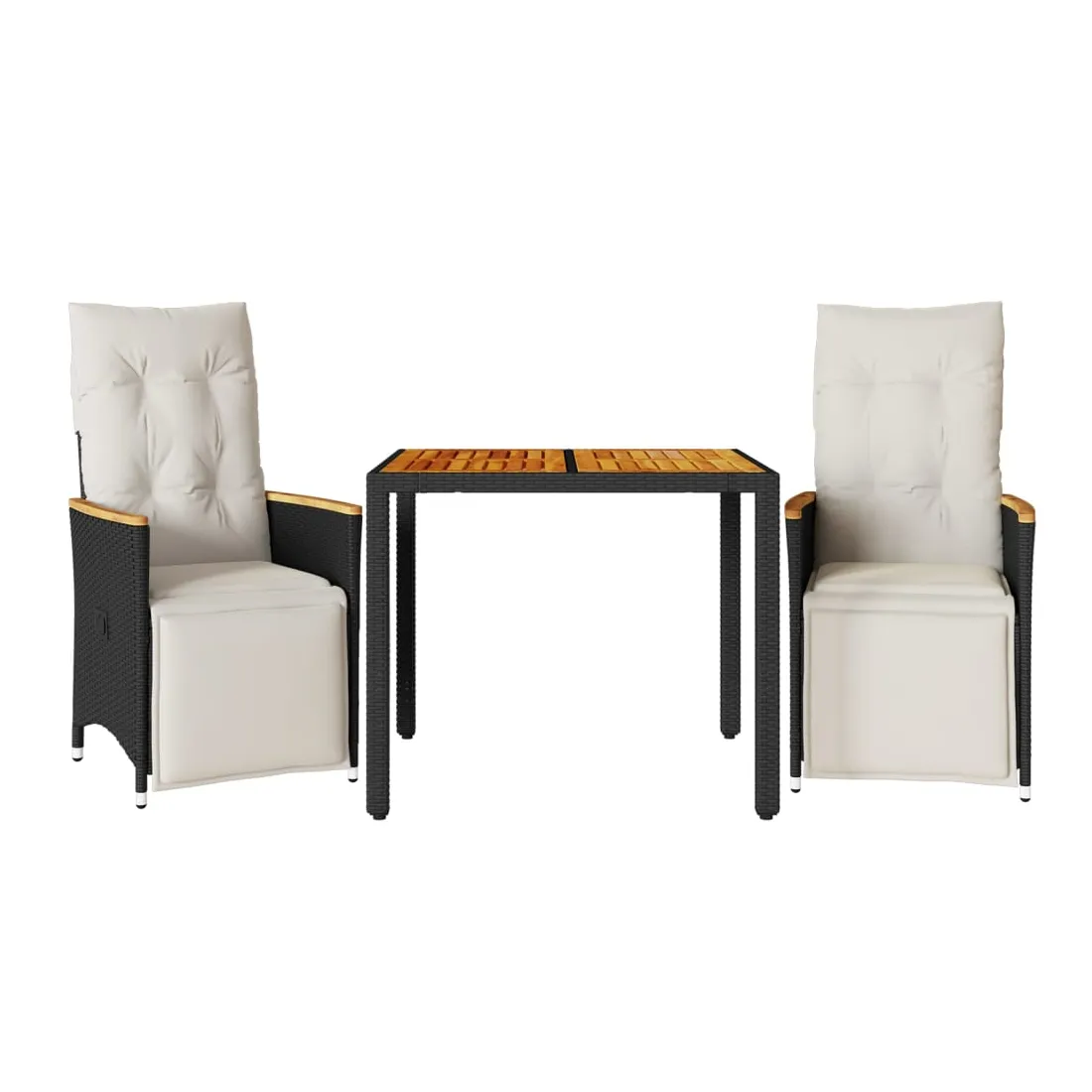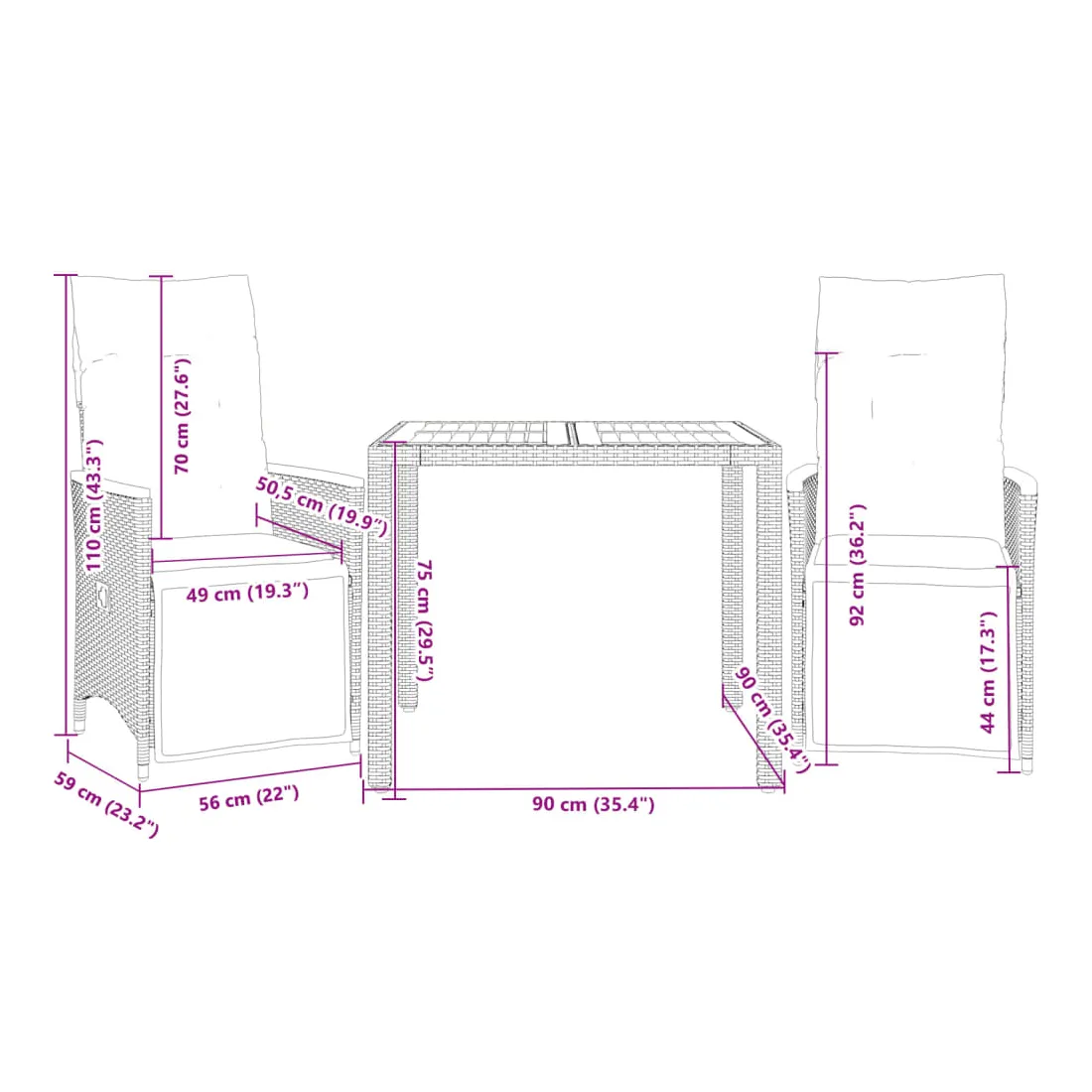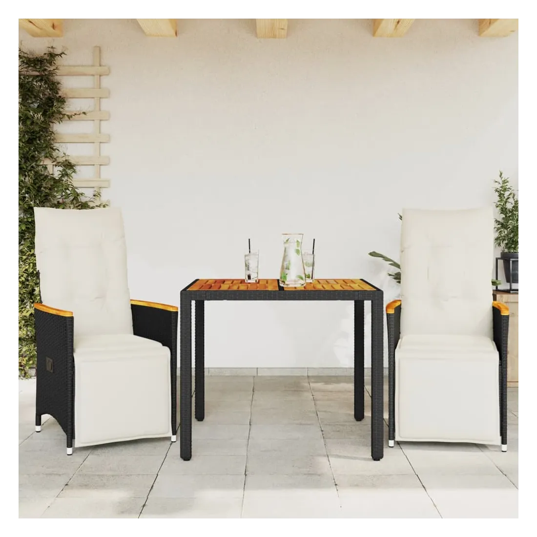 Savourez un café ou discutez avec votre famille et vos amis dans le jardin, l'arrière-cour ou sur le balcon avec cet ensemble de bistro confortable ! Matériau durable : la résine tressée, également connue sous le nom de poly rotin, est un matériau synthétique solide et nécessitant peu d'entretien qui ressemble au rotin naturel. Il est léger, facile à nettoyer et couramment utilisé pour les meubles d'extérieur en raison de sa durabilité et de ses propriétés de résistance aux intempéries.Dossier et repose-pied réglables : ce siège de jardin est doté d'une poignée. Vous pouvez régler le dossier et le repose-pied dans n'importe quelle position en tirant sur la poignée, et le remettre rapidement dans sa position initiale.Expérience d'assise confortable : ce mobilier d'extérieur, doté de coussins épais, offre une expérience d'assise confortable.Housse amovible et lavable : ces coussins de siège sont dotés de housses amovibles pour un lavage et un entretien faciles. Les coussins de dossier ont un rabat à l'arrière pour une fixation facile aux dossiers.Dessus stable et facile à nettoyer : cette table de jardin a un dessus en bois d'acacia robuste, durable et facile à nettoyer avec un chiffon humide. Bon à savoir :Pour que vos meubles d'extérieur restent beaux, nous vous recommandons de les protéger avec une housse imperméable.