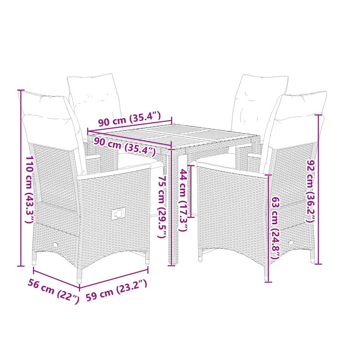 - Dimensions : 90 x 90 x 75 cm (L x l x H)