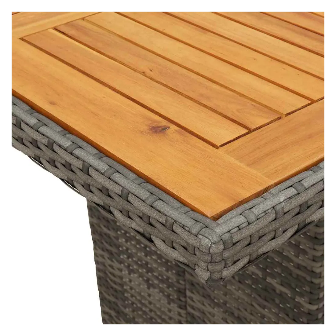 - Matériau : résine tressée, acier, bois d'acacia massif avec finition à l'huile