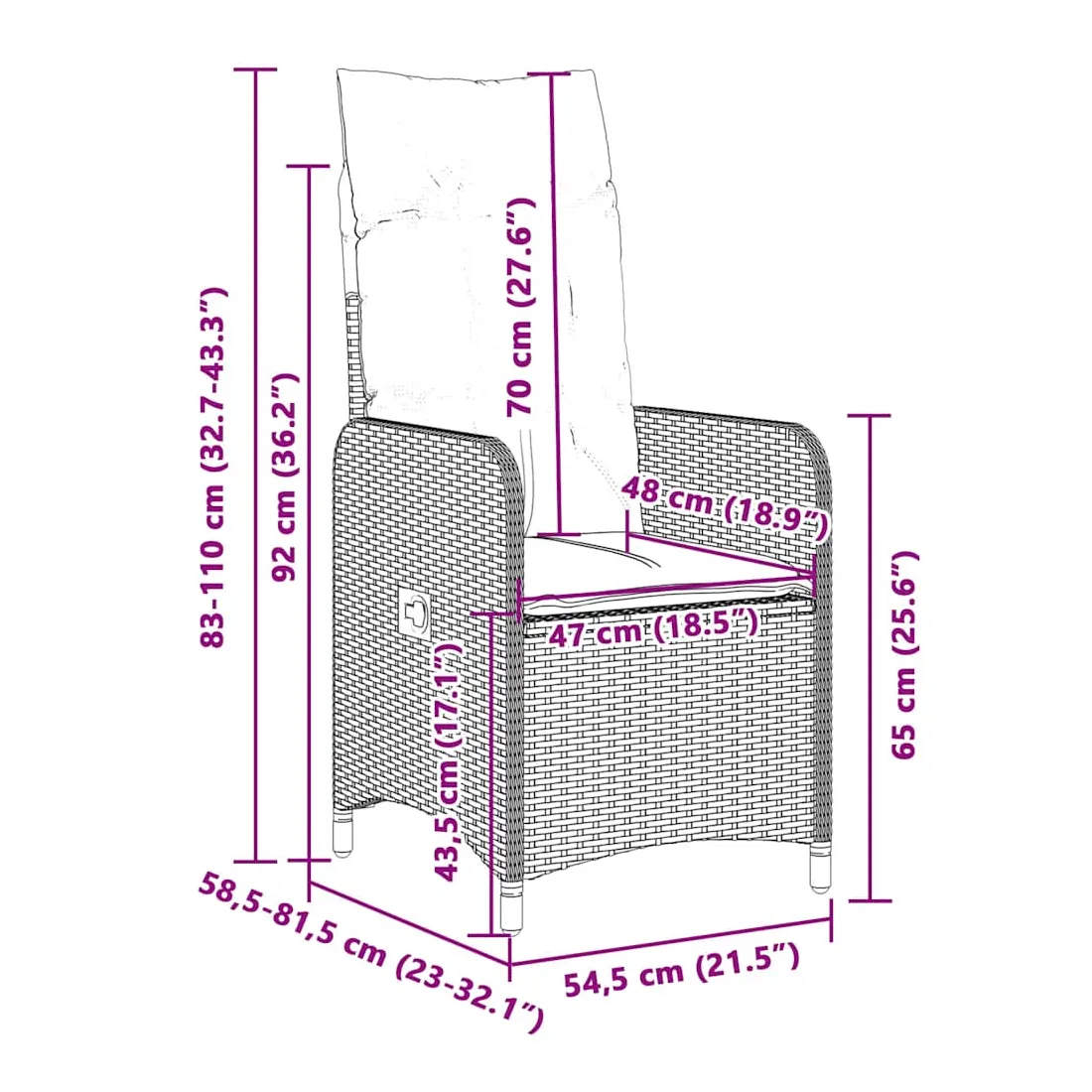 Savourez un café ou discutez avec votre famille et vos amis dans le jardin, l'arrière-cour ou sur le balcon avec cet ensemble de bistro confortable ! Matériau durable : la résine tressée, également connue sous le nom de poly rotin, est un matériau synthétique solide et nécessitant peu d'entretien qui ressemble au rotin naturel. Elle est légère, facile à nettoyer et couramment utilisée pour les meubles d'extérieur en raison de sa durabilité et de ses propriétés de résistance aux intempéries.Dossier réglable : ce siège de jardin est doté d'une poignée. Vous pouvez régler le dossier dans n'importe quelle position en tirant sur la poignée et le remettre rapidement dans sa position initiale.Expérience d'assise confortable : ce mobilier d'extérieur, doté de coussins épais, offre une expérience d'assise confortable.Housse amovible et lavable : ces coussins de siège sont dotés de housses amovibles pour un lavage et un entretien faciles. Les coussins de dossier ont un rabat à l'arrière pour une fixation facile aux dossiers.Dessus stable et facile à nettoyer : cette table de jardin a un dessus en bois d'acacia robuste, durable et facile à nettoyer avec un chiffon humide. Bon à savoir :Pour que vos meubles d'extérieur restent beaux, nous vous recommandons de les protéger avec une housse imperméable.