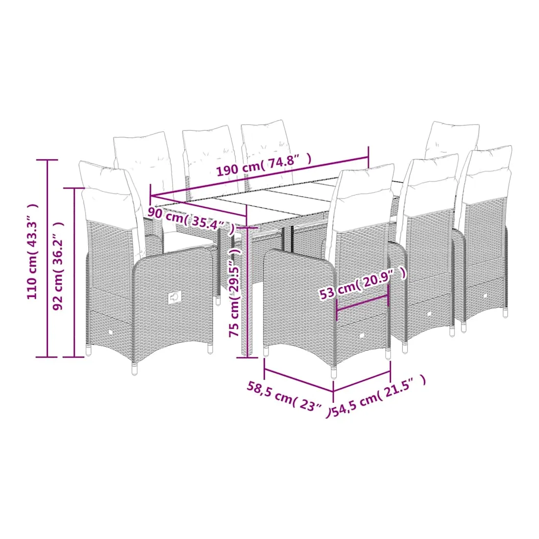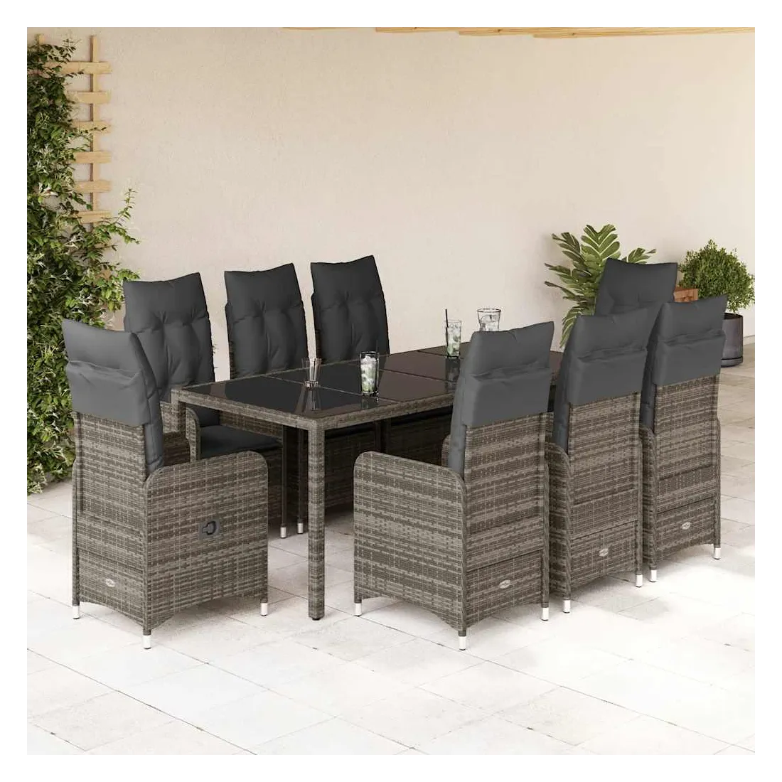 Savourez un café ou discutez avec votre famille et vos amis dans le jardin, l'arrière-cour ou sur le balcon avec cet ensemble de bistro confortable ! Matériau durable : la résine tressée, également connue sous le nom de poly rotin, est un matériau synthétique solide et nécessitant peu d'entretien qui ressemble au rotin naturel. Elle est légère, facile à nettoyer et couramment utilisée pour les meubles d'extérieur en raison de sa durabilité et de ses propriétés de résistance aux intempéries.Dossier réglable : ce siège de jardin est doté d'une poignée. Vous pouvez régler le dossier dans n'importe quelle position en tirant sur la poignée et le remettre rapidement dans sa position initiale.Expérience d'assise confortable : ce mobilier d'extérieur, doté de coussins épais, offre une expérience d'assise confortable.Housse amovible et lavable : ces coussins de siège sont dotés de housses amovibles pour un lavage et un entretien faciles. Les coussins de dossier ont un rabat à l'arrière pour une fixation facile aux dossiers.Dessus en verre : le dessus de la table d'extérieur est fabriqué en verre trempé solide et durable, ce qui le rend facile à nettoyer avec un chiffon humide et ajoute une touche d'élégance à votre espace extérieur. Bon à savoir :Pour que vos meubles d'extérieur restent beaux, nous vous recommandons de les protéger avec une housse imperméable.