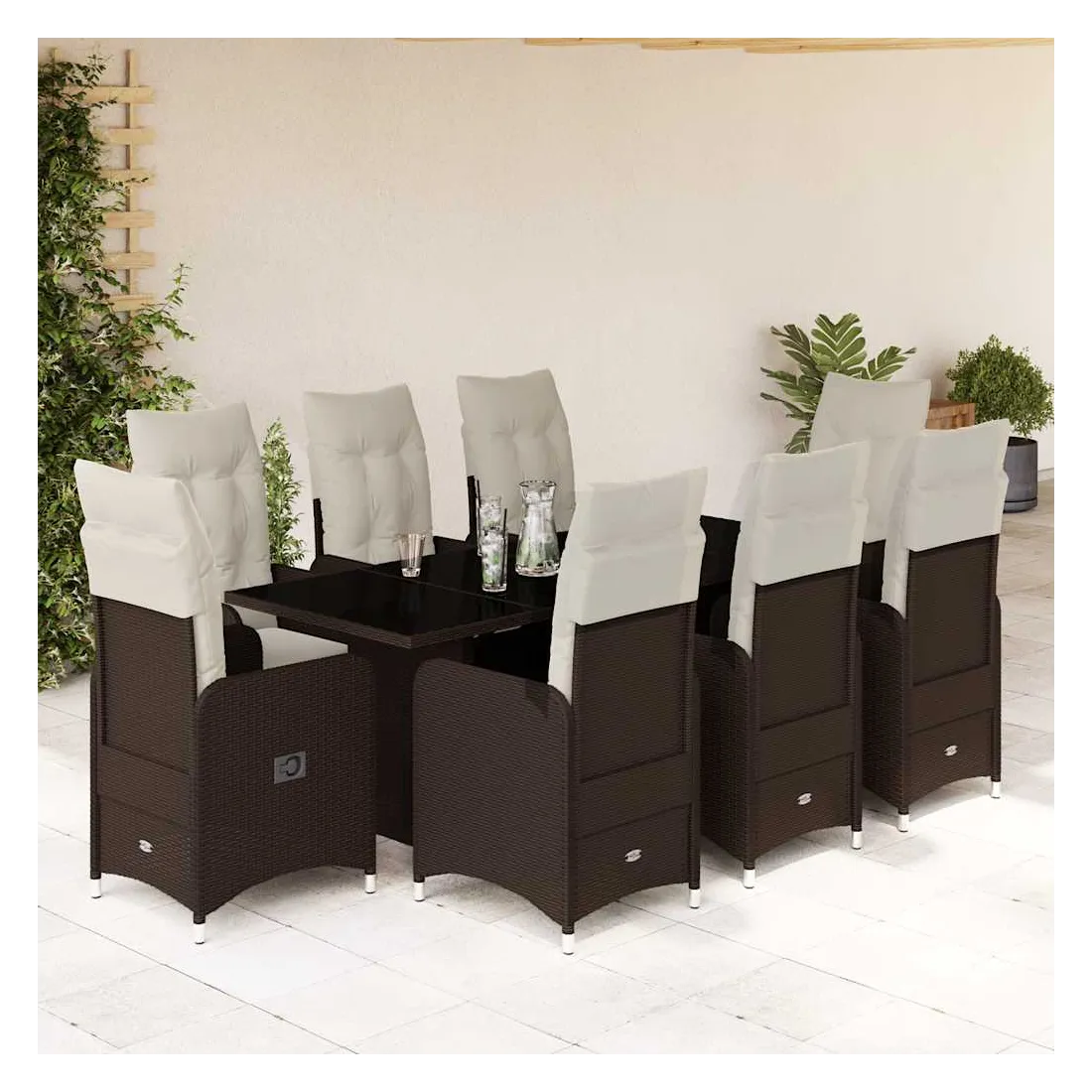 Savourez un café ou discutez avec votre famille et vos amis dans le jardin, l'arrière-cour ou sur le balcon avec cet ensemble de bistro confortable ! Matériau durable : la résine tressée, également connue sous le nom de poly rotin, est un matériau synthétique solide et nécessitant peu d'entretien qui ressemble au rotin naturel. Elle est légère, facile à nettoyer et couramment utilisée pour les meubles d'extérieur en raison de sa durabilité et de ses propriétés de résistance aux intempéries.Dossier réglable : ce siège de jardin est doté d'une poignée. Vous pouvez régler le dossier dans n'importe quelle position en tirant sur la poignée et le remettre rapidement dans sa position initiale.Expérience d'assise confortable : ce mobilier d'extérieur, doté de coussins épais, offre une expérience d'assise confortable.Housse amovible et lavable : ces coussins de siège sont dotés de housses amovibles pour un lavage et un entretien faciles. Les coussins de dossier ont un rabat à l'arrière pour une fixation facile aux dossiers.Dessus en verre : le dessus de la table d'extérieur est fabriqué en verre trempé solide et durable, ce qui le rend facile à nettoyer avec un chiffon humide et ajoute une touche d'élégance à votre espace extérieur. Bon à savoir :Pour que vos meubles d'extérieur restent beaux, nous vous recommandons de les protéger avec une housse imperméable.