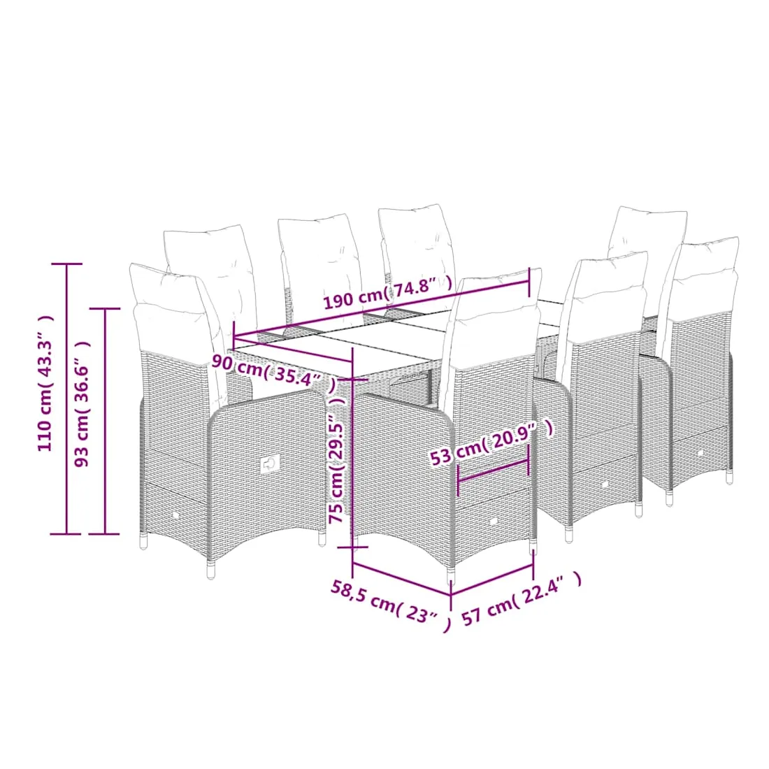 - Dimensions : 190 x 80 x 75 cm (L x l x H)