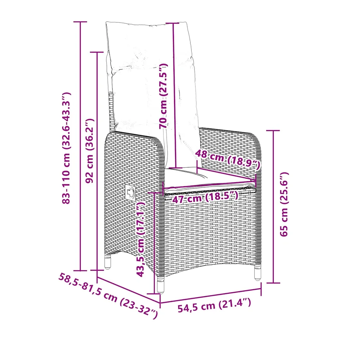 - Dimensions de l'assise : 54,5 x 58,5 x 92 cm (l x P x H)