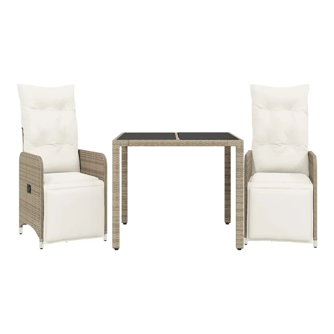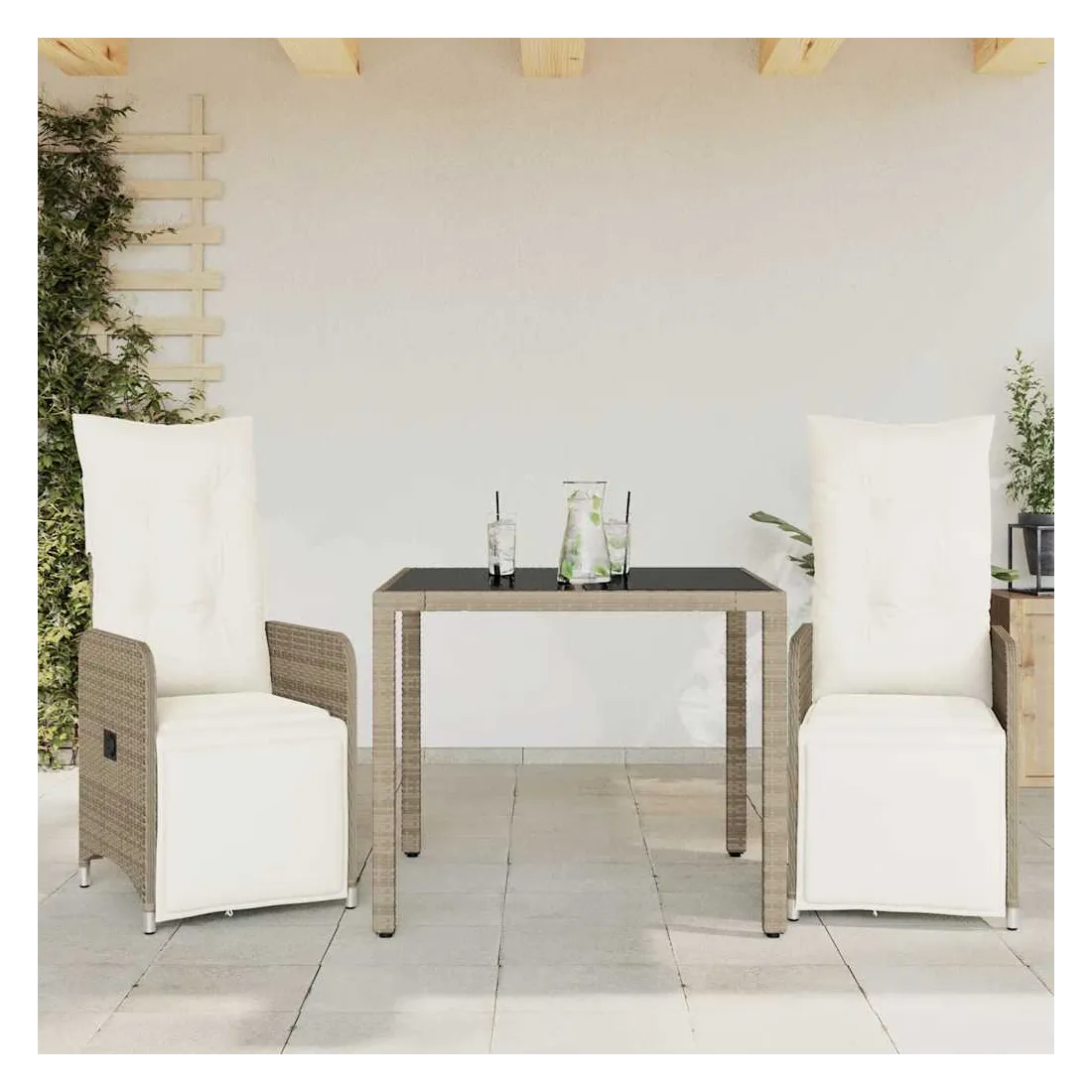 Savourez un café ou discutez avec votre famille et vos amis dans le jardin, l'arrière-cour ou sur le balcon avec cet ensemble de bistro confortable ! Matériau durable : la résine tressée, également connue sous le nom de poly rotin, est un matériau synthétique solide et nécessitant peu d'entretien qui ressemble au rotin naturel. Elle est légère, facile à nettoyer et couramment utilisée pour les meubles d'extérieur en raison de sa durabilité et de ses propriétés de résistance aux intempéries.Dossier et repose-pied réglables : ce siège de jardin est doté d'une poignée. Vous pouvez régler le dossier et le repose-pied dans n'importe quelle position en tirant sur la poignée, et le remettre rapidement dans sa position initiale.Expérience d'assise confortable : ce mobilier d'extérieur, doté de coussins épais, offre une expérience d'assise confortable.Housse amovible et lavable : ces coussins de siège sont dotés de housses amovibles pour un lavage et un entretien faciles. Les coussins de dossier ont un rabat à l'arrière pour une fixation facile aux dossiers.Dessus en verre : le dessus de la table d'extérieur est fabriqué en verre trempé solide et durable, ce qui le rend facile à nettoyer avec un chiffon humide et ajoute une touche d'élégance à votre espace extérieur. Bon à savoir :Pour que vos meubles d'extérieur restent beaux, nous vous recommandons de les protéger avec une housse imperméable.