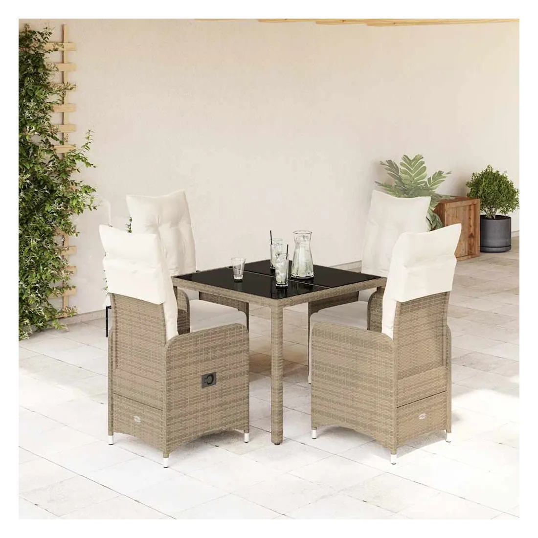 Savourez un café ou discutez avec votre famille et vos amis dans le jardin, l'arrière-cour ou sur le balcon avec cet ensemble de bistro confortable ! Matériau durable : la résine tressée, également connue sous le nom de poly rotin, est un matériau synthétique solide et nécessitant peu d'entretien qui ressemble au rotin naturel. Elle est légère, facile à nettoyer et couramment utilisée pour les meubles d'extérieur en raison de sa durabilité et de ses propriétés de résistance aux intempéries.Dossier et repose-pied réglables : ce siège de jardin est doté d'une poignée. Vous pouvez régler le dossier et le repose-pied dans n'importe quelle position en tirant sur la poignée, et le remettre rapidement dans sa position initiale.Expérience d'assise confortable : ce mobilier d'extérieur, doté de coussins épais, offre une expérience d'assise confortable.Housse amovible et lavable : ces coussins de siège sont dotés de housses amovibles pour un lavage et un entretien faciles. Les coussins de dossier ont un rabat à l'arrière pour une fixation facile aux dossiers.Dessus en verre : le dessus de la table d'extérieur est fabriqué en verre trempé solide et durable, ce qui le rend facile à nettoyer avec un chiffon humide et ajoute une touche d'élégance à votre espace extérieur. Bon à savoir :Pour que vos meubles d'extérieur restent beaux, nous vous recommandons de les protéger avec une housse imperméable.