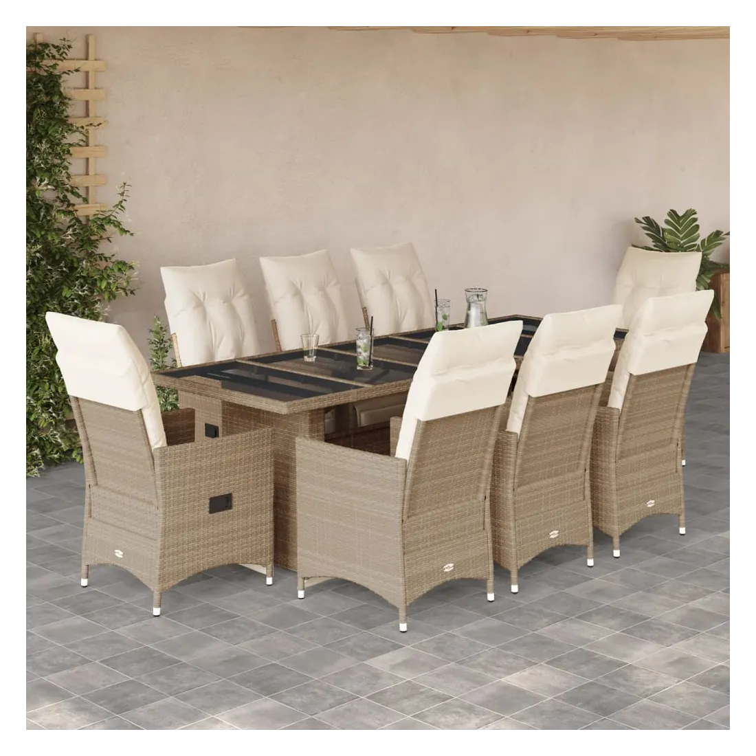 Savourez un café ou discutez avec votre famille et vos amis dans le jardin, l'arrière-cour ou sur le balcon avec cet ensemble de bistro confortable ! Matériau durable : la résine tressée, également connue sous le nom de poly rotin, est un matériau synthétique solide et nécessitant peu d'entretien qui ressemble au rotin naturel. Il est léger, facile à nettoyer et couramment utilisé pour les meubles d'extérieur en raison de sa durabilité et de ses propriétés de résistance aux intempéries.Dossier et repose-pied réglables : ce siège de jardin est doté d'une poignée. Vous pouvez régler le dossier et le repose-pied dans n'importe quelle position en tirant sur la poignée, et le remettre rapidement dans sa position initiale.Expérience d'assise confortable : ce mobilier d'extérieur, doté de coussins épais, offre une expérience d'assise confortable.Housse amovible et lavable : ces coussins de siège sont dotés de housses amovibles pour un lavage et un entretien faciles. Les coussins de dossier ont un rabat à l'arrière pour une fixation facile aux dossiers.Dessus en verre : le dessus de la table d'extérieur est fabriqué en verre trempé solide et durable, ce qui le rend facile à nettoyer avec un chiffon humide et ajoute une touche d'élégance à votre espace extérieur. Bon à savoir :Pour que vos meubles d'extérieur restent beaux, nous vous recommandons de les protéger avec une housse imperméable.