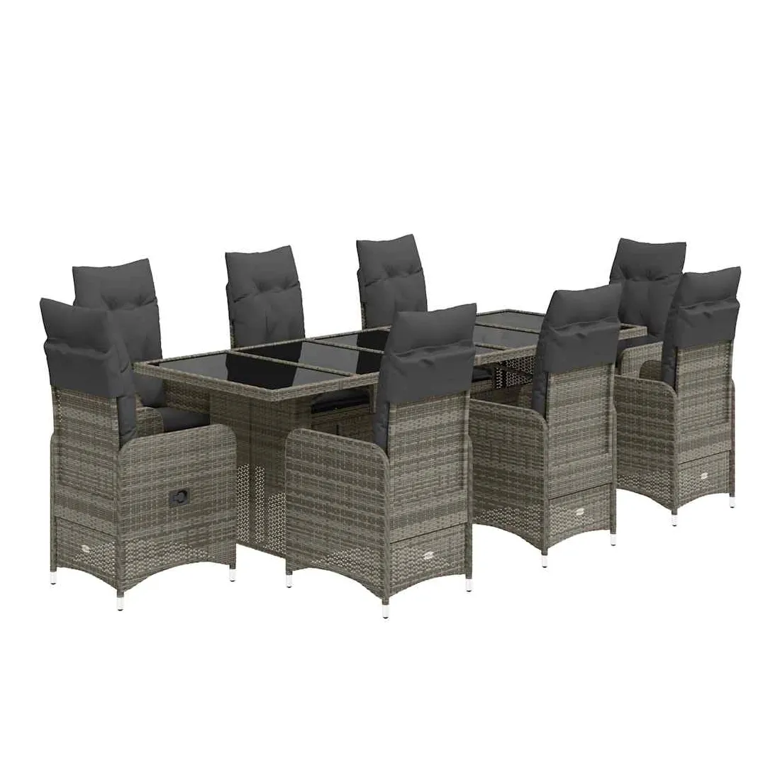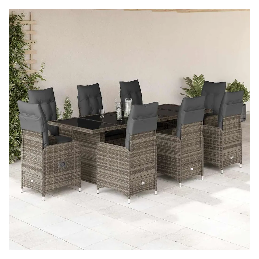Savourez un café ou discutez avec votre famille et vos amis dans le jardin, l'arrière-cour ou sur le balcon avec cet ensemble de bistro confortable ! Matériau durable : la résine tressée, également connue sous le nom de poly rotin, est un matériau synthétique solide et nécessitant peu d'entretien qui ressemble au rotin naturel. Elle est légère, facile à nettoyer et couramment utilisée pour les meubles d'extérieur en raison de sa durabilité et de ses propriétés de résistance aux intempéries.Dossier réglable : ce siège de jardin est doté d'une poignée. Vous pouvez régler le dossier dans n'importe quelle position en tirant sur la poignée et le remettre rapidement dans sa position initiale.Expérience d'assise confortable : ce mobilier d'extérieur, doté de coussins épais, offre une expérience d'assise confortable.Housse amovible et lavable : ces coussins de siège sont dotés de housses amovibles pour un lavage et un entretien faciles. Les coussins de dossier ont un rabat à l'arrière pour une fixation facile aux dossiers.Dessus en verre : le dessus de la table d'extérieur est fabriqué en verre trempé solide et durable, ce qui le rend facile à nettoyer avec un chiffon humide et ajoute une touche d'élégance à votre espace extérieur. Bon à savoir :Pour que vos meubles d'extérieur restent beaux, nous vous recommandons de les protéger avec une housse imperméable.