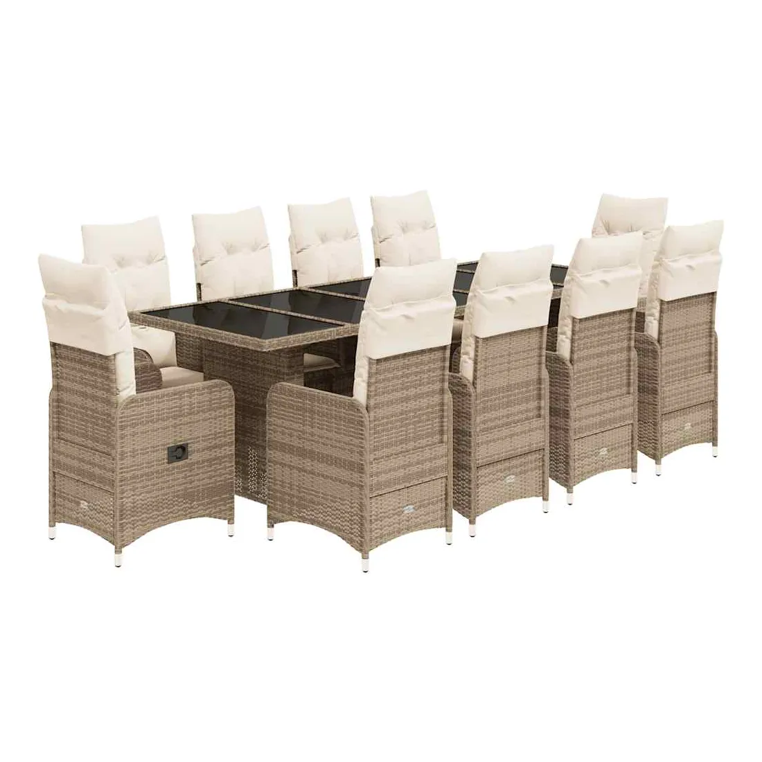 - Matériaux : Rotin PE, acier thermolaqué, verre trempé