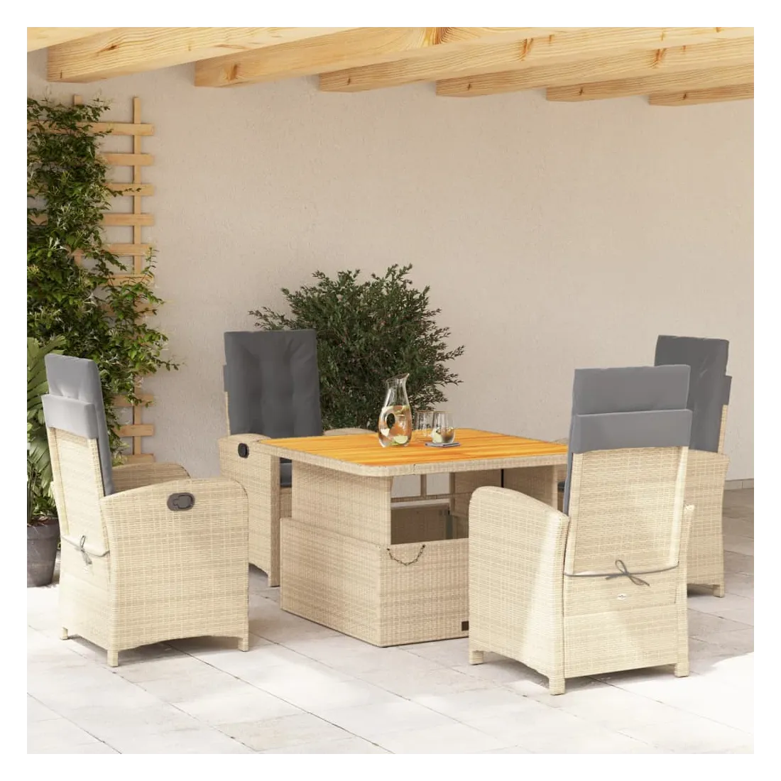 Cet ensemble de salle à manger de jardin est un excellent choix pour les repas en plein air ou pour vous détendre dans le jardin, dans l'arrière-cour ou sur la terrasse. Matériau durable : la résine tressée, également connue sous le nom de poly rotin, est un matériau synthétique solide et nécessitant peu d'entretien qui ressemble au rotin naturel. Il est léger, facile à nettoyer et couramment utilisé pour les meubles d'extérieur en raison de sa durabilité et de ses propriétés de résistance aux intempéries.Dossier réglable : ce siège de jardin est doté d'une poignée. Vous pouvez régler le dossier dans n'importe quelle position en tirant sur la poignée et le remettre rapidement dans sa position initiale.Dessus de table réglable : le dessus de table peut être soulevé pour rendre la table plus haute, ce qui transforme la table d'extérieur d'une table basse à une table de salle à manger. Elle est parfaite pour recevoir des invités ou prendre des repas à l'extérieur.Housse amovible et lavable : ces coussins de siège sont dotés de housses amovibles pour un lavage et un entretien faciles. Les coussins de dossier ont un rabat à l'arrière pour une fixation facile aux dossiers.Expérience d'assise confortable : ce mobilier d'extérieur, doté de coussins épais, offre une expérience d'assise confortable. Bon à savoir :Pour que vos meubles d'extérieur restent beaux, nous vous recommandons de les protéger avec une housse imperméable.