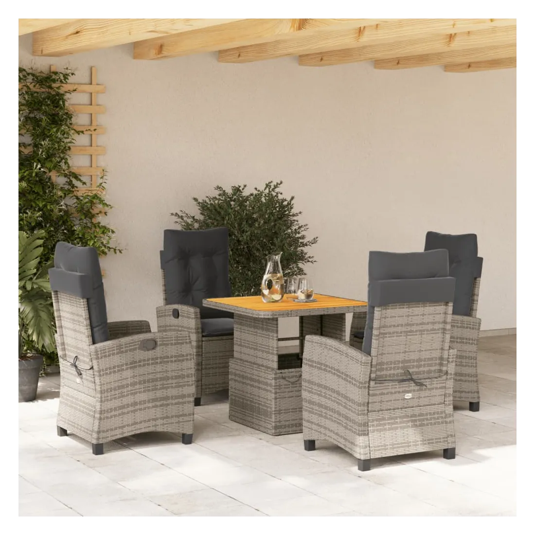 Cet ensemble de salle à manger de jardin est un excellent choix pour les repas en plein air ou pour vous détendre dans le jardin, dans l'arrière-cour ou sur la terrasse. Matériau durable : la résine tressée, également connue sous le nom de poly rotin, est un matériau synthétique solide et nécessitant peu d'entretien qui ressemble au rotin naturel. Il est léger, facile à nettoyer et couramment utilisé pour les meubles d'extérieur en raison de sa durabilité et de ses propriétés de résistance aux intempéries.Dossier réglable : ce siège de jardin est doté d'une poignée. Vous pouvez régler le dossier dans n'importe quelle position en tirant sur la poignée et le remettre rapidement dans sa position initiale.Dessus de table réglable : le dessus de table peut être soulevé pour rendre la table plus haute, ce qui transforme la table d'extérieur d'une table basse à une table de salle à manger. Elle est parfaite pour recevoir des invités ou prendre des repas à l'extérieur.Housse amovible et lavable : ces coussins de siège sont dotés de housses amovibles pour un lavage et un entretien faciles. Les coussins de dossier ont un rabat à l'arrière pour une fixation facile aux dossiers.Expérience d'assise confortable : ce mobilier d'extérieur, doté de coussins épais, offre une expérience d'assise confortable. Bon à savoir :Pour que vos meubles d'extérieur restent beaux, nous vous recommandons de les protéger avec une housse imperméable.