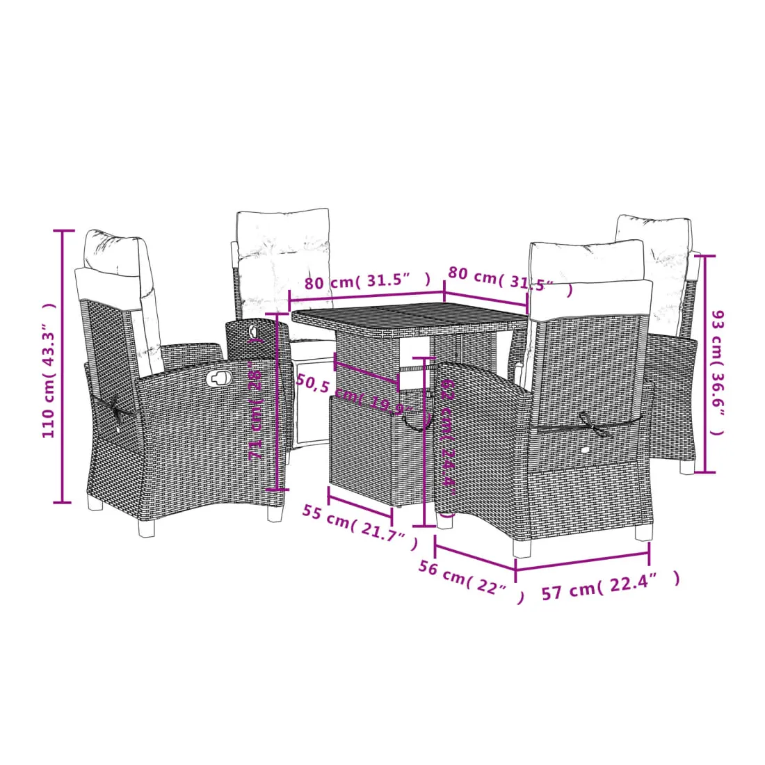 - Dimensions de la table : 80 x 80 x 40/71 cm (L x l x H)