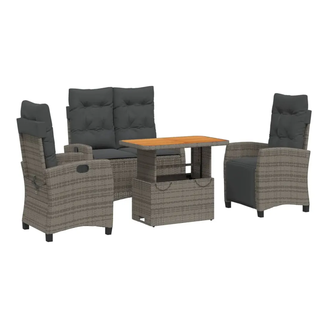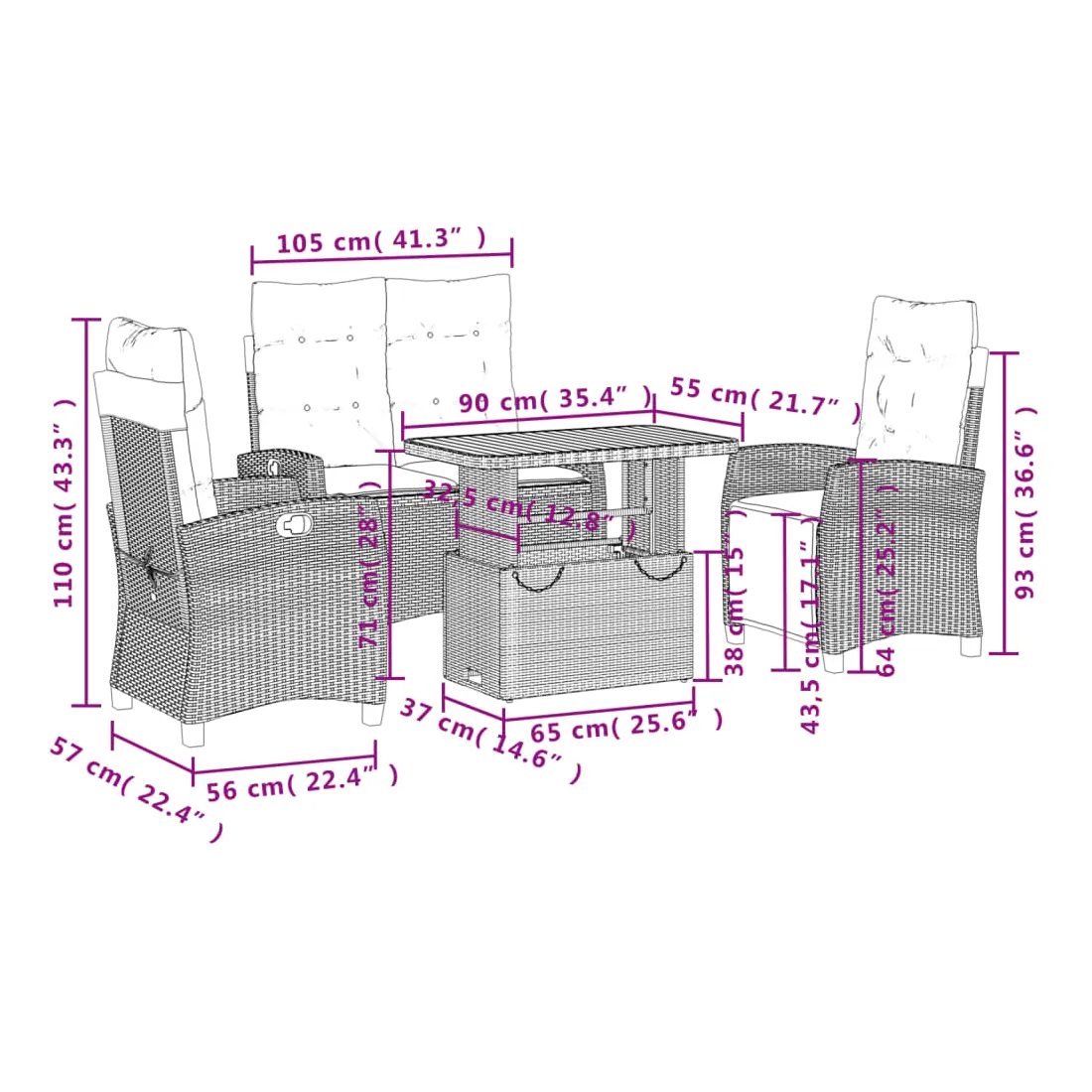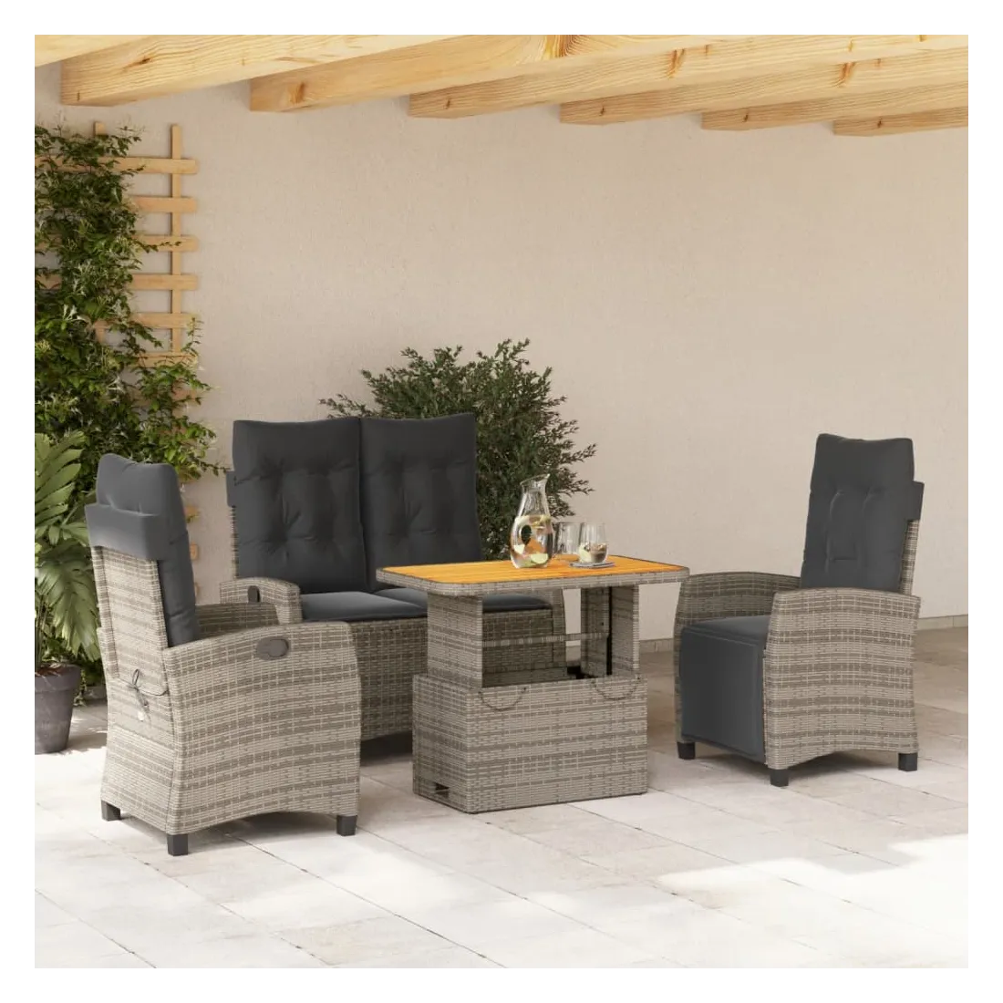 Cet ensemble de salle à manger de jardin est un excellent choix pour les repas en plein air ou simplement pour se détendre dans le jardin, la cour arrière ou sur la terrasse. Matériau durable : le rotin PE, également connu sous le nom de polyrotin, est un matériau synthétique solide et facile d'entretien qui ressemble au rotin naturel. Il est léger, facile à nettoyer et couramment utilisé pour les meubles d'extérieur en raison de sa durabilité et de ses propriétés de résistance aux intempéries. Dossier réglable : ce siège de jardin est équipé d'une poignée. Vous pouvez régler le dossier dans n'importe quelle position en tirant sur la poignée, puis le remettre rapidement dans sa position d'origine. Plateau réglable : le plateau peut être relevé pour rehausser la table, ce qui transforme la table d'extérieur en table basse ou en table à manger. Elle est parfaite pour recevoir des invités ou prendre des repas à l'extérieur. Housse amovible et lavable : ces coussins d'assise sont dotés de housses amovibles pour faciliter le lavage et l'entretien. Les coussins de dossier sont munis d'un rabat à l'arrière pour faciliter leur fixation aux dossiers. Assise confortable : Ce mobilier d'extérieur, doté de coussins épais et rembourrés, offre une assise confortable. Bon à savoir :Pour que votre mobilier d'extérieur reste beau, nous vous recommandons de le protéger avec une housse imperméable.