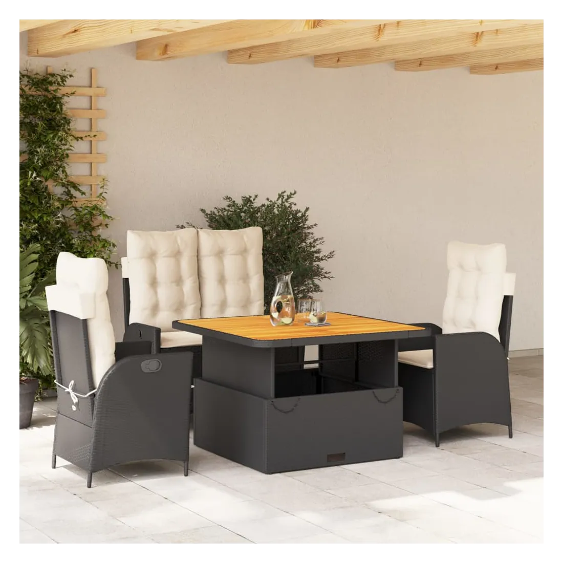 Cet ensemble de salle à manger de jardin est un excellent choix pour les repas en plein air ou pour vous détendre dans le jardin, dans l'arrière-cour ou sur la terrasse. Matériau durable : la résine tressée, également connue sous le nom de poly rotin, est un matériau synthétique solide et nécessitant peu d'entretien qui ressemble au rotin naturel. Il est léger, facile à nettoyer et couramment utilisé pour les meubles d'extérieur en raison de sa durabilité et de ses propriétés de résistance aux intempéries.Dossier réglable : ce siège de jardin est doté d'une poignée. Vous pouvez régler le dossier dans n'importe quelle position en tirant sur la poignée et le remettre rapidement dans sa position initiale.Dessus de table réglable : le dessus de table peut être soulevé pour rendre la table plus haute, ce qui transforme la table d'extérieur d'une table basse à une table de salle à manger. Elle est parfaite pour recevoir des invités ou prendre des repas à l'extérieur.Housse amovible et lavable : ces coussins de siège sont dotés de housses amovibles pour un lavage et un entretien faciles. Les coussins de dossier ont un rabat à l'arrière pour une fixation facile aux dossiers.Expérience d'assise confortable : ce mobilier d'extérieur, doté de coussins épais, offre une expérience d'assise confortable. Bon à savoir :Pour que vos meubles d'extérieur restent beaux, nous vous recommandons de les protéger avec une housse imperméable.
