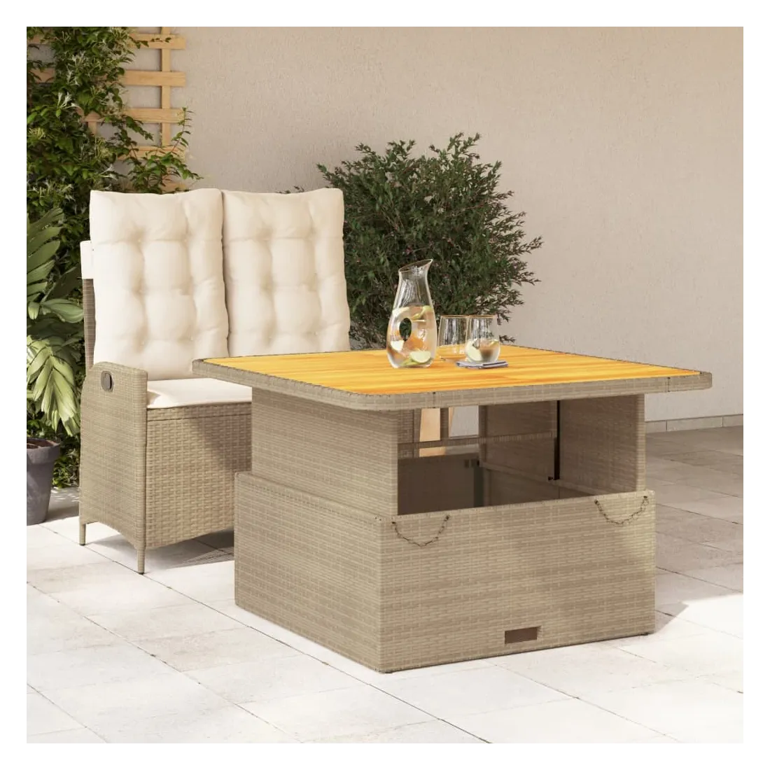 Cet ensemble de salle à manger de jardin est un excellent choix pour les repas en plein air ou pour vous détendre dans le jardin, dans l'arrière-cour ou sur la terrasse. Matériau durable : la résine tressée, également connue sous le nom de poly rotin, est un matériau synthétique solide et nécessitant peu d'entretien qui ressemble au rotin naturel. Il est léger, facile à nettoyer et couramment utilisé pour les meubles d'extérieur en raison de sa durabilité et de ses propriétés de résistance aux intempéries.Dossier réglable : ce siège de jardin est doté d'une poignée. Vous pouvez régler le dossier dans n'importe quelle position en tirant sur la poignée et le remettre rapidement dans sa position initiale.Dessus de table réglable : le dessus de table peut être soulevé pour rendre la table plus haute, ce qui transforme la table d'extérieur d'une table basse à une table de salle à manger. Elle est parfaite pour recevoir des invités ou prendre des repas à l'extérieur.Housse amovible et lavable : ces coussins de siège sont dotés de housses amovibles pour un lavage et un entretien faciles. Les coussins de dossier ont un rabat à l'arrière pour une fixation facile aux dossiers.Expérience d'assise confortable : ce mobilier d'extérieur, doté de coussins épais, offre une expérience d'assise confortable. Bon à savoir :Pour que vos meubles d'extérieur restent beaux, nous vous recommandons de les protéger avec une housse imperméable.