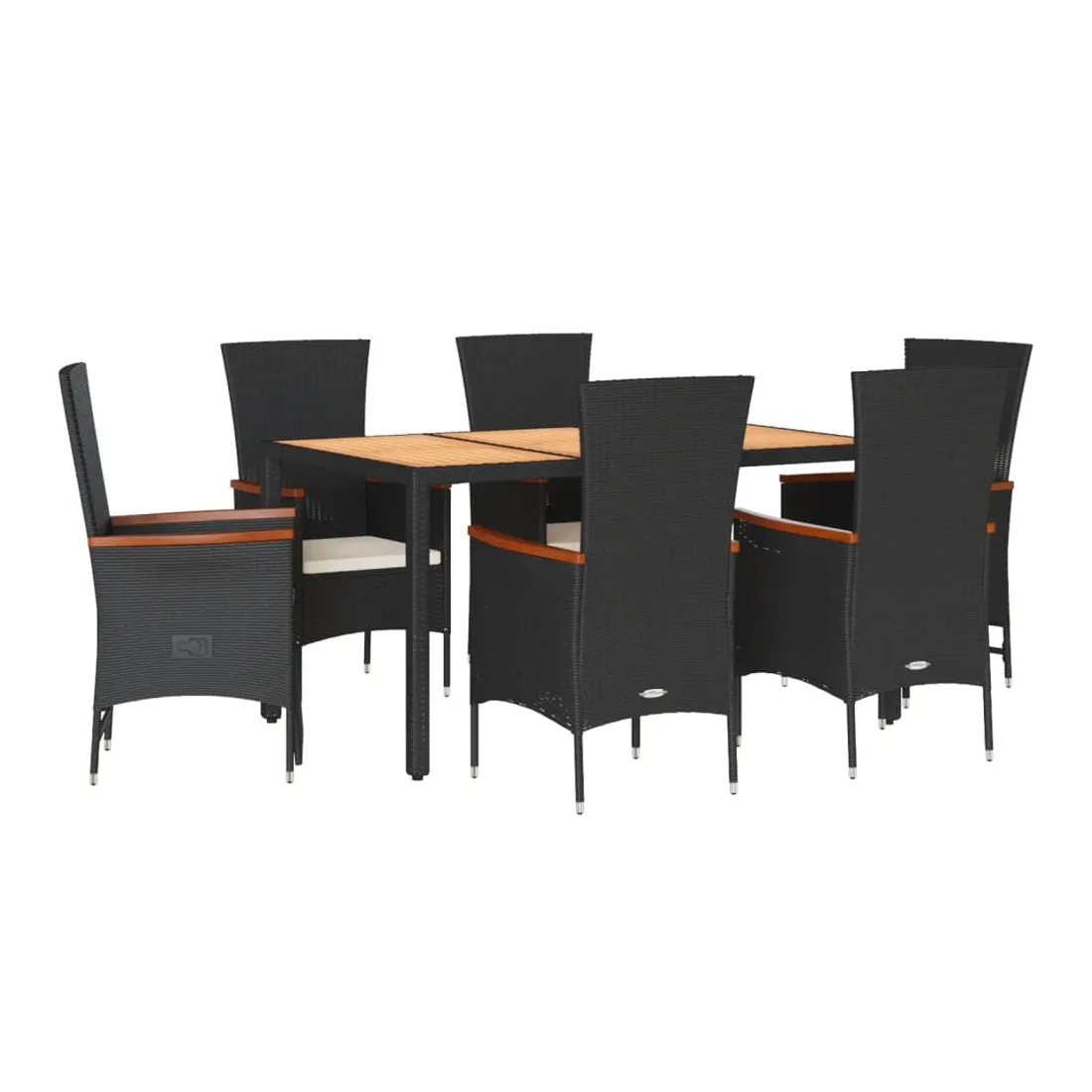 - Matériaux : Rotin PE, acier thermolaqué, bois d’acacia massif finition huilée