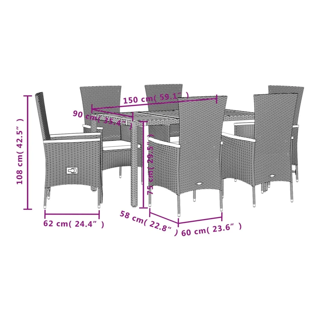 Cet ensemble de salle à manger de jardin est un excellent choix pour les repas en plein air ou simplement pour se détendre dans le jardin, la cour arrière ou sur la terrasse. Matériau durable : le rotin PE, également appelé polyrotin, est un matériau synthétique solide et facile d'entretien qui ressemble au rotin naturel. Il est léger, facile à nettoyer et couramment utilisé pour les meubles d'extérieur en raison de sa durabilité et de sa résistance aux intempéries. Dossier et repose-pieds réglables : ce siège de jardin est équipé d'une poignée. Vous pouvez régler le dossier et le repose-pieds dans n'importe quelle position en tirant sur la poignée, puis les remettre rapidement dans leur position d'origine. Assise confortable : ce mobilier d'extérieur, doté de coussins épais et rembourrés, offre une assise confortable. Housse amovible et lavable : les coussins d'assise sont dotés de housses amovibles pour faciliter le lavage et l'entretien. Plateau stable et facile à nettoyer : Cette table de jardin est dotée d'un plateau en bois d'acacia robuste, durable et facile à nettoyer avec un chiffon humide. Bon à savoir :Pour que votre mobilier d'extérieur reste beau, nous vous recommandons de le protéger avec une housse imperméable.