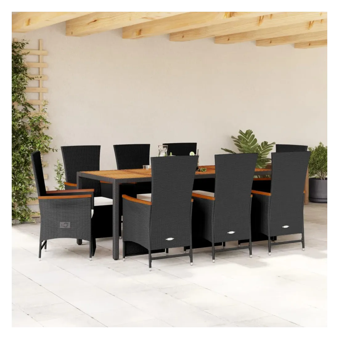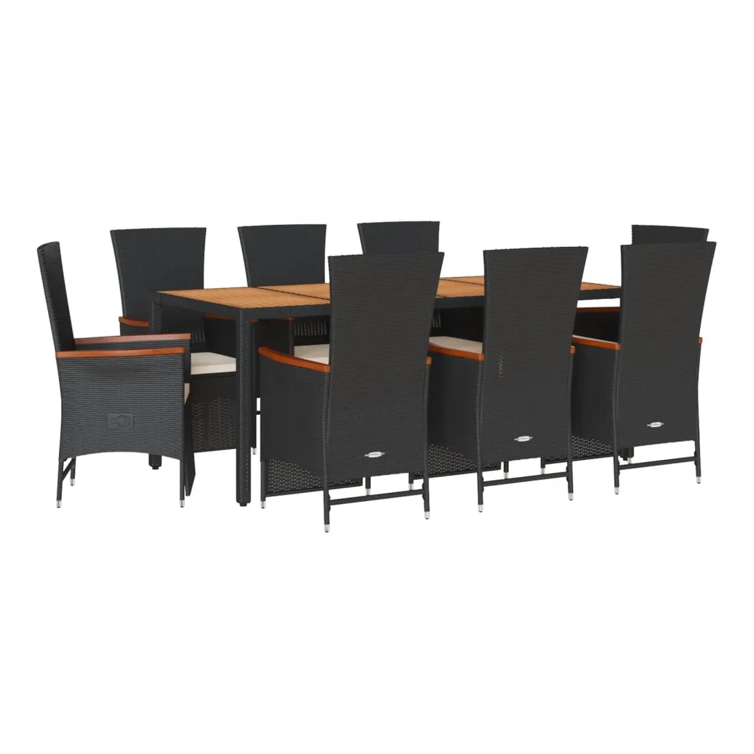 Cet ensemble de salle à manger de jardin est un excellent choix pour les repas en plein air ou pour vous détendre dans le jardin, dans l'arrière-cour ou sur la terrasse. Matériau durable : la résine tressée, également connue sous le nom de poly rotin, est un matériau synthétique solide et nécessitant peu d'entretien qui ressemble au rotin naturel. Il est léger, facile à nettoyer et couramment utilisé pour les meubles d'extérieur en raison de sa durabilité et de ses propriétés de résistance aux intempéries.Dossier et repose-pied réglables : ce siège de jardin est doté d'une poignée. Vous pouvez régler le dossier et le repose-pied dans n'importe quelle position en tirant sur la poignée, et les remettre rapidement dans leur position initiale.Expérience d'assise confortable : ce mobilier d'extérieur, doté de coussins épais, offre une expérience d'assise confortable.Housse amovible et lavable : ces coussins de siège sont dotés de housses amovibles pour un lavage et un entretien faciles.Dessus stable et facile à nettoyer : cette table de jardin a un dessus en bois d'acacia robuste, durable et facile à nettoyer avec un chiffon humide. Bon à savoir :Pour que vos meubles d'extérieur restent beaux, nous vous recommandons de les protéger avec une housse imperméable.