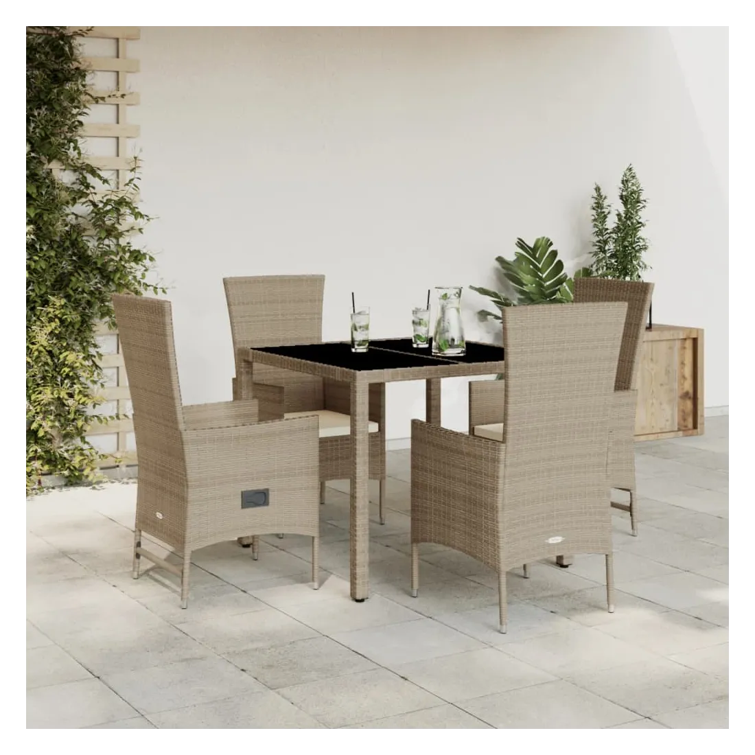 Cet ensemble de salle à manger de jardin est un excellent choix pour les repas en plein air ou pour vous détendre dans le jardin, dans l'arrière-cour ou sur la terrasse. Matériau durable : la résine tressée, également connue sous le nom de poly rotin, est un matériau synthétique solide et nécessitant peu d'entretien qui ressemble au rotin naturel. Il est léger, facile à nettoyer et couramment utilisé pour les meubles d'extérieur en raison de sa durabilité et de ses propriétés de résistance aux intempéries.Dossier réglable : ce siège de jardin est doté d'une poignée. Vous pouvez régler le dossier dans n'importe quelle position en tirant sur la poignée et le remettre rapidement dans sa position initiale.Expérience d'assise confortable : ce mobilier d'extérieur, doté de coussins épais, offre une expérience d'assise confortable.Housse amovible et lavable : ces coussins de siège sont dotés de housses amovibles pour un lavage et un entretien faciles.Dessus en verre : le dessus de la table d'extérieur est fabriqué en verre trempé solide et durable, ce qui le rend facile à nettoyer avec un chiffon humide et ajoute une touche d'élégance à votre espace extérieur. Bon à savoir :Pour que vos meubles d'extérieur restent beaux, nous vous recommandons de les protéger avec une housse imperméable.