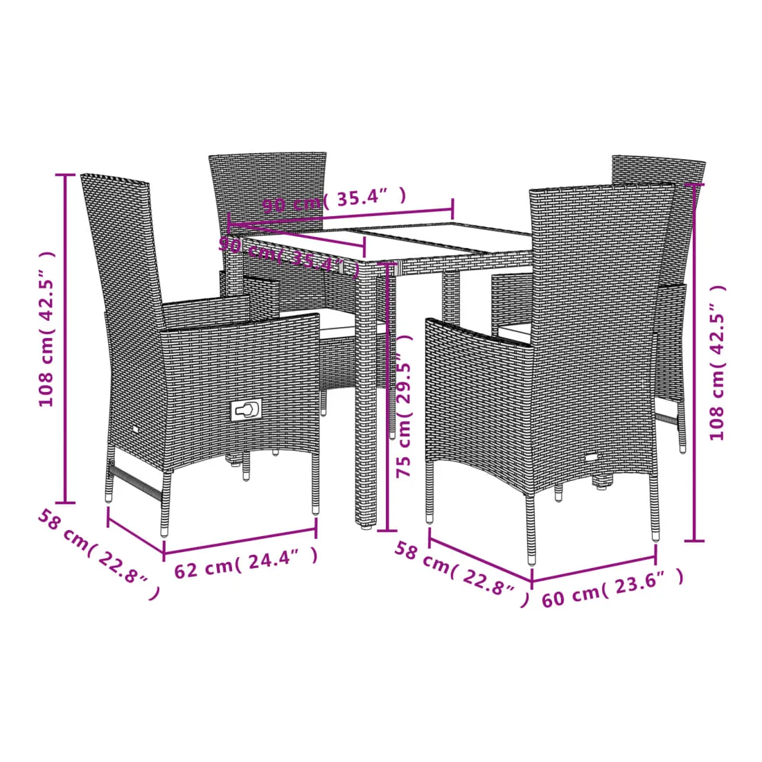 - Dimensions du siège : 58 x 62 x 108 cm (l x P x H)