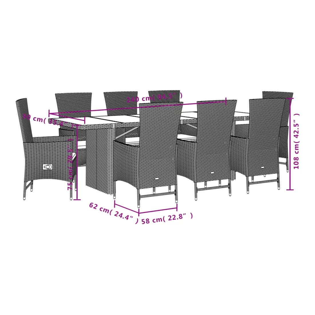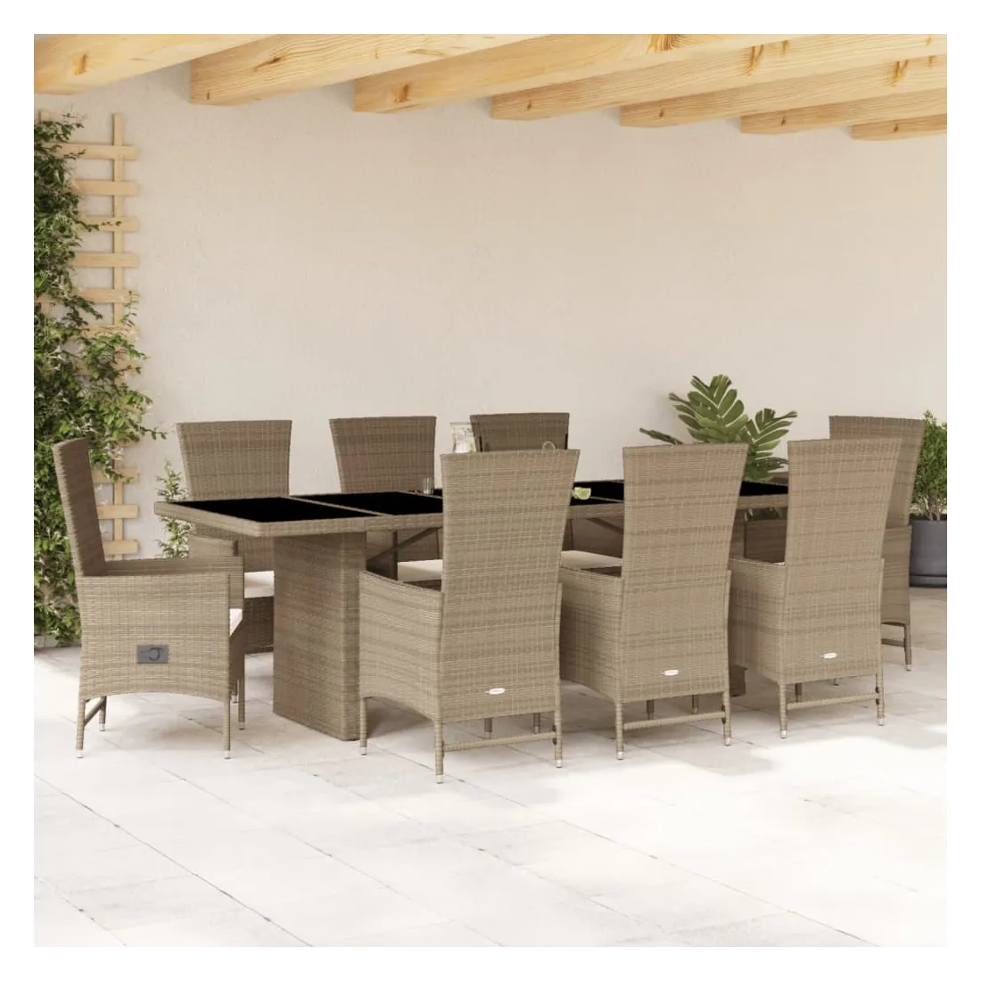 Cet ensemble de salle à manger de jardin est un excellent choix pour les repas en plein air ou pour vous détendre dans le jardin, dans l'arrière-cour ou sur la terrasse. Matériau durable : la résine tressée, également connue sous le nom de poly rotin, est un matériau synthétique solide et nécessitant peu d'entretien qui ressemble au rotin naturel. Il est léger, facile à nettoyer et couramment utilisé pour les meubles d'extérieur en raison de sa durabilité et de ses propriétés de résistance aux intempéries.Dossier réglable : ce siège de jardin est doté d'une poignée. Vous pouvez régler le dossier dans n'importe quelle position en tirant sur la poignée et le remettre rapidement dans sa position initiale.Expérience d'assise confortable : ce mobilier d'extérieur, doté de coussins épais, offre une expérience d'assise confortable.Housse amovible et lavable : ces coussins de siège sont dotés de housses amovibles pour un lavage et un entretien faciles.Dessus en verre : le dessus de la table d'extérieur est fabriqué en verre trempé solide et durable, ce qui le rend facile à nettoyer avec un chiffon humide et ajoute une touche d'élégance à votre espace extérieur. Bon à savoir :Pour que vos meubles d'extérieur restent beaux, nous vous recommandons de les protéger avec une housse imperméable.