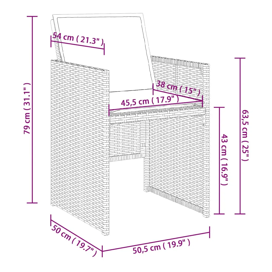 - Dimensions du siège : 45,5 x 38 cm (l x P)