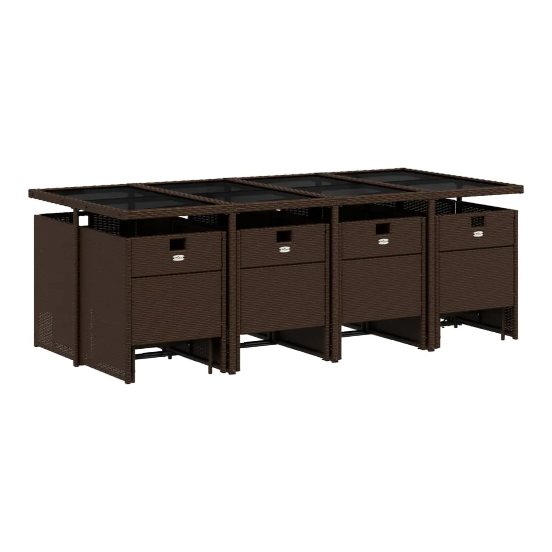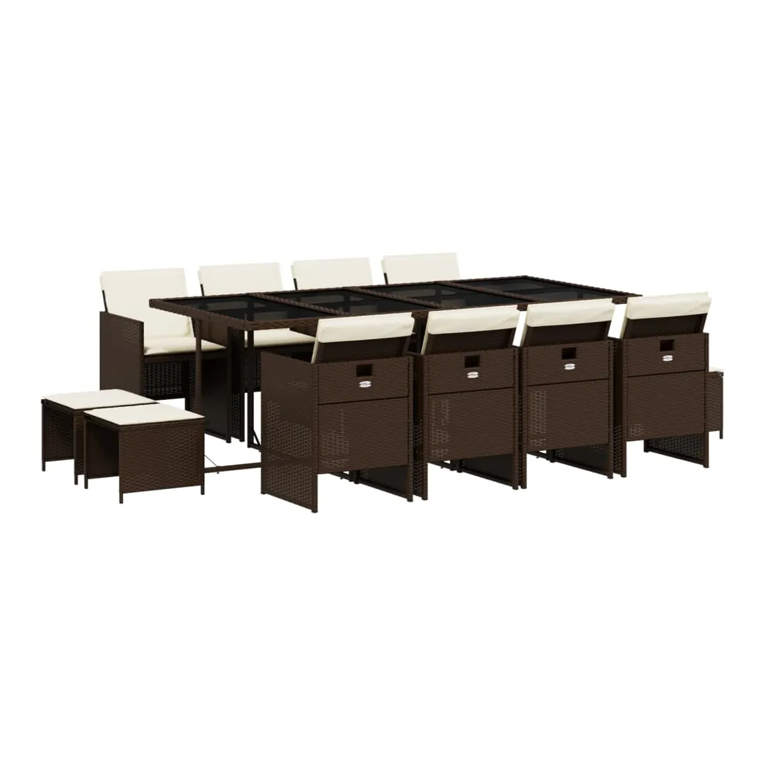 Cet ensemble de salle à manger de jardin est un excellent choix pour les repas en plein air ou pour vous détendre dans le jardin, dans l'arrière-cour ou sur la terrasse. Matériau durable : la résine tressée, également connue sous le nom de poly rotin, est un matériau synthétique solide et nécessitant peu d'entretien qui ressemble au rotin naturel. Il est léger, facile à nettoyer et couramment utilisé pour les meubles d'extérieur en raison de sa durabilité et de ses propriétés de résistance aux intempéries.Rangement compact : ces chaises sont dotées d'un dossier rabattable, ce qui permet de les ranger facilement sous la table. Une fois pliées, elles se rangent parfaitement sous la table, formant un cube peu encombrant. De plus, les tabourets peuvent également être rangés sous les chaises, maximisant encore davantage l'efficacité de l'espace. Expérience d'assise confortable : ce mobilier d'extérieur, doté de coussins épais, offre une expérience d'assise confortable.Housse amovible et lavable : ces coussins de siège sont dotés de housses amovibles pour un lavage et un entretien faciles.Dessus en verre : le dessus de la table d'extérieur est fabriqué en verre trempé solide et durable, ce qui le rend facile à nettoyer avec un chiffon humide et ajoute une touche d'élégance à votre espace extérieur. Bon à savoir : Pour que vos meubles d'extérieur restent beaux, nous vous recommandons de les protéger avec une housse imperméable.