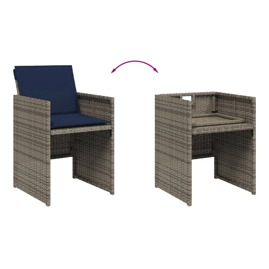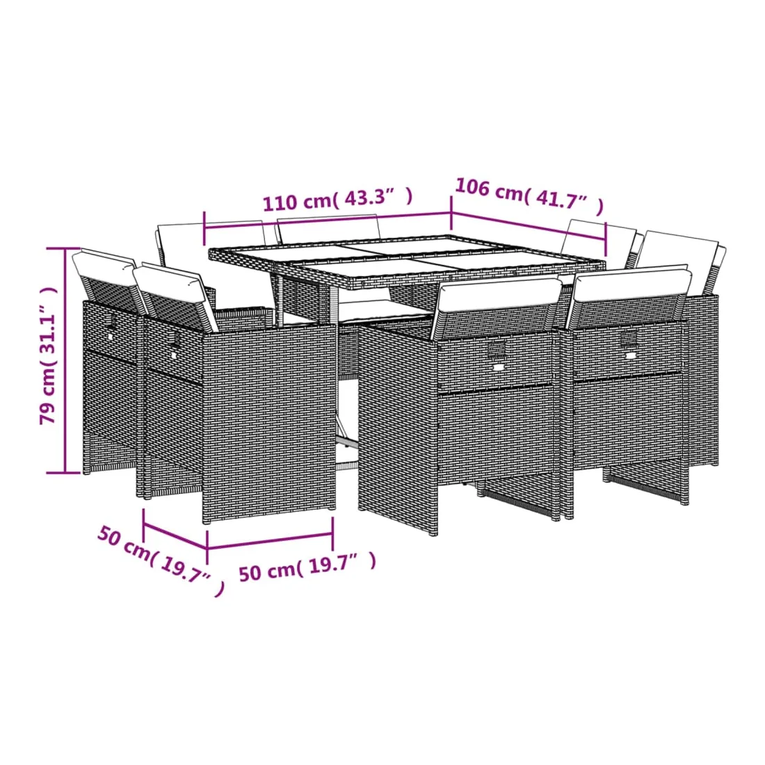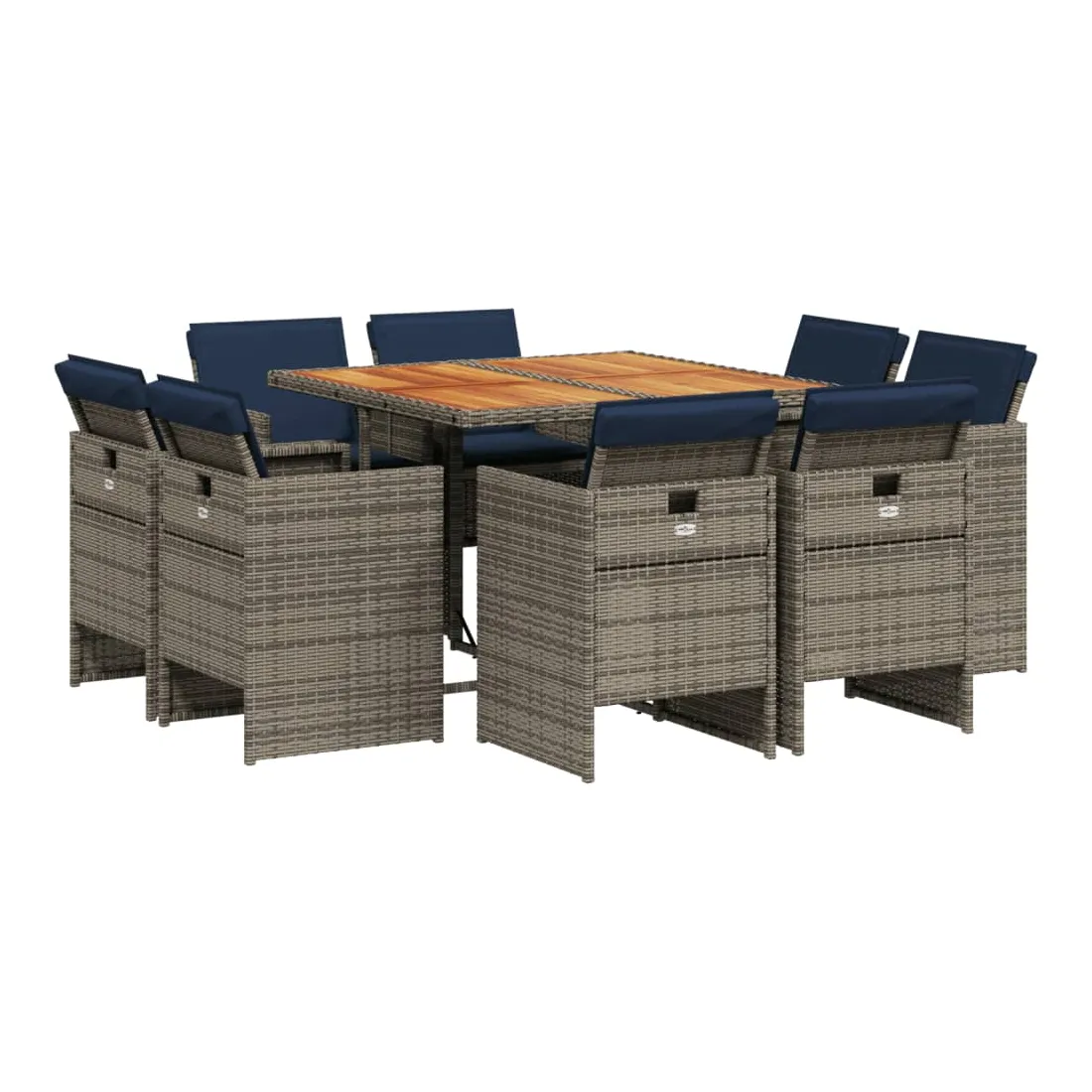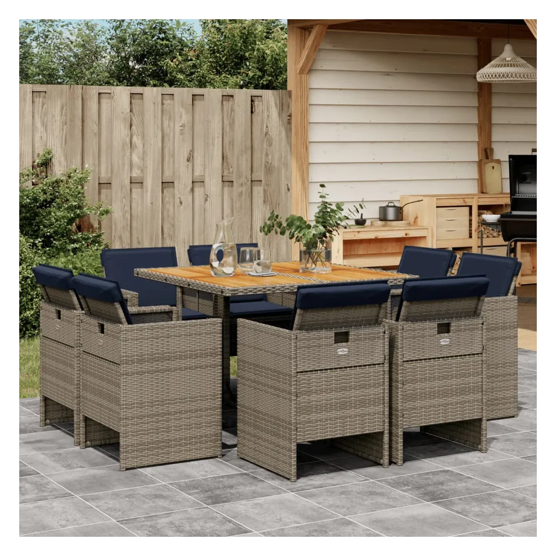 Ensemble à manger de jardin 9 pcs coussins gris résine tressée