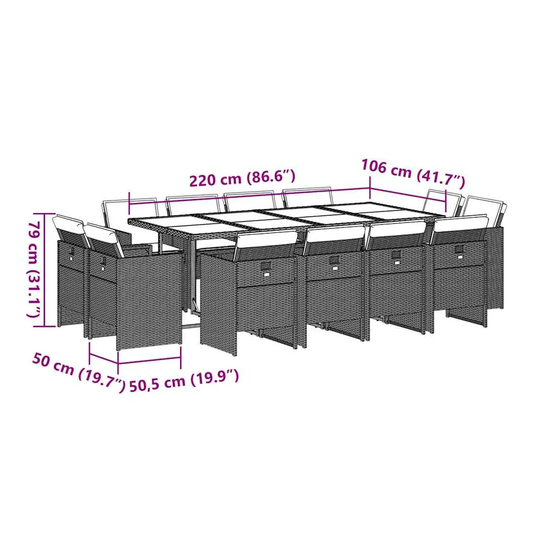 - Dimensions : 220 x 106 x 73 cm (L x l x H)