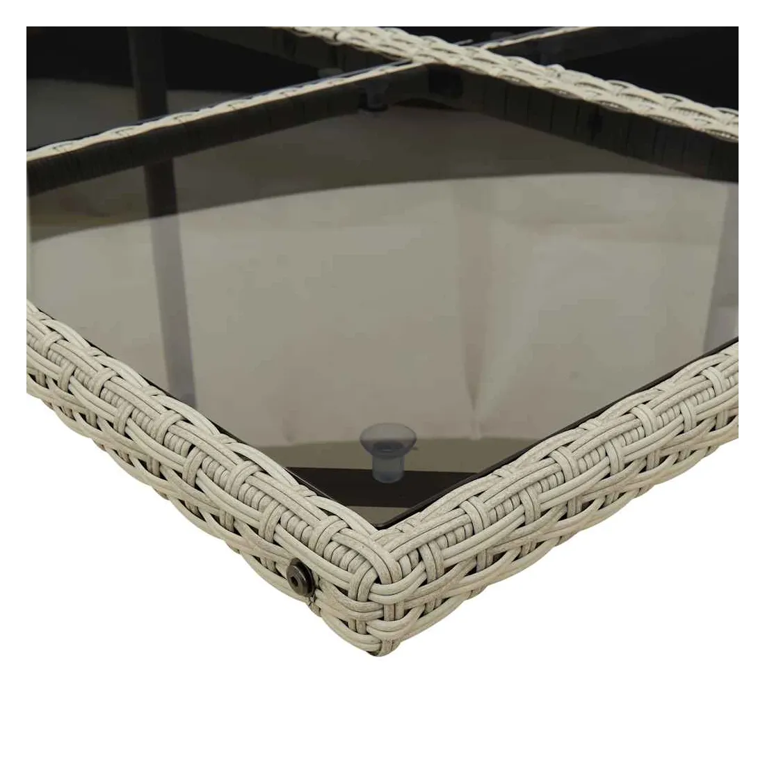 - Matériau : résine tressée, acier enduit de poudre, verre trempé