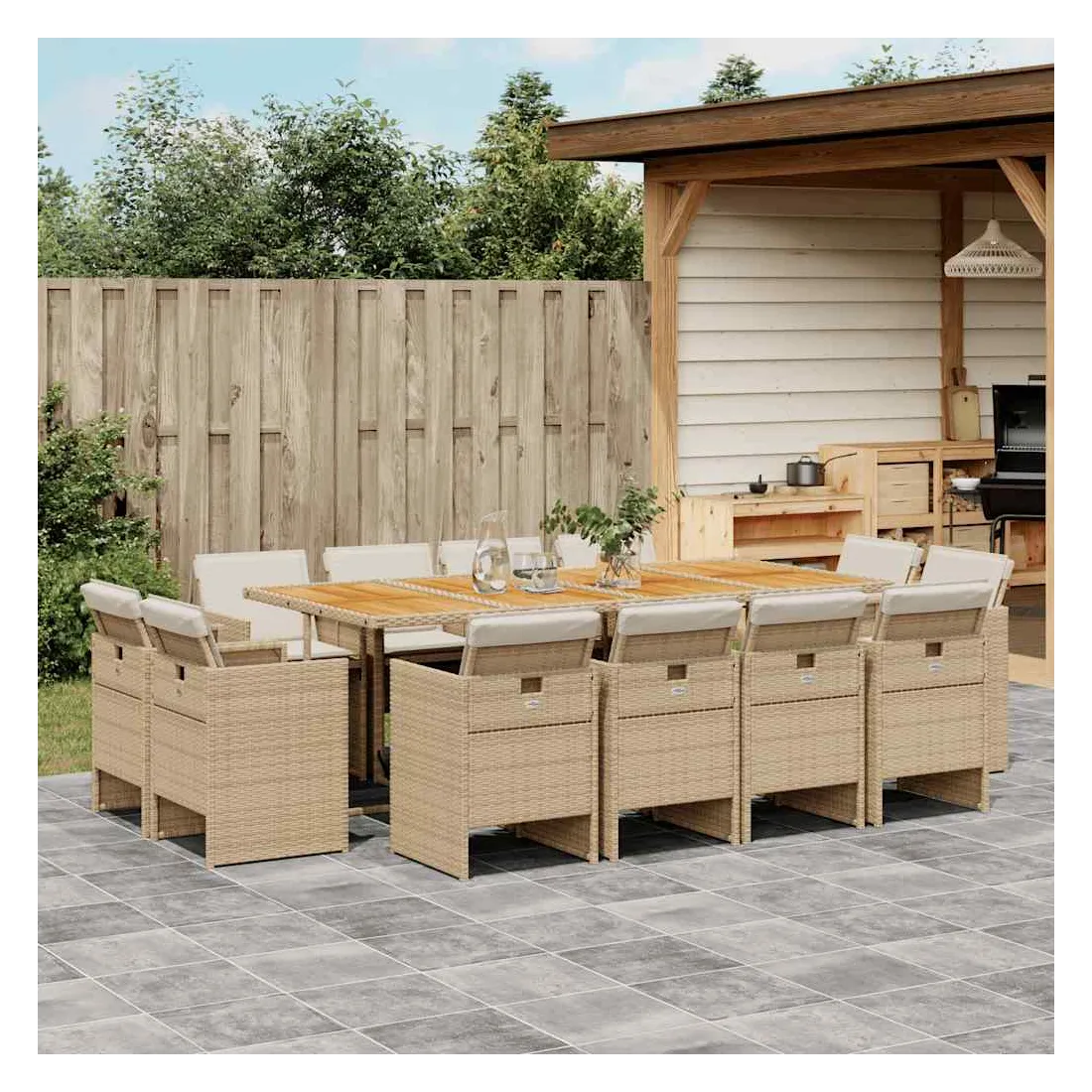 Cet ensemble de salle à manger de jardin est un excellent choix pour les repas en plein air ou pour vous détendre dans le jardin, dans l'arrière-cour ou sur la terrasse. Matériau durable : la résine tressée, également connue sous le nom de poly rotin, est un matériau synthétique solide et nécessitant peu d'entretien qui ressemble au rotin naturel. Il est léger, facile à nettoyer et couramment utilisé pour les meubles d'extérieur en raison de sa durabilité et de ses propriétés de résistance aux intempéries.Rangement compact : ces chaises sont dotées d'un dossier rabattable, ce qui permet de les ranger facilement sous la table. Une fois pliées, elles se rangent parfaitement sous la table, formant un cube peu encombrant. Expérience d'assise confortable : ce mobilier d'extérieur, doté de coussins épais, offre une expérience d'assise confortable.Housse amovible et lavable : ces coussins de siège sont dotés de housses amovibles pour un lavage et un entretien faciles.Dessus stable et facile à nettoyer : cette table de jardin a un dessus en bois d'acacia robuste, durable et facile à nettoyer avec un chiffon humide. Bon à savoir : Pour que vos meubles d'extérieur restent beaux, nous vous recommandons de les protéger avec une housse imperméable.