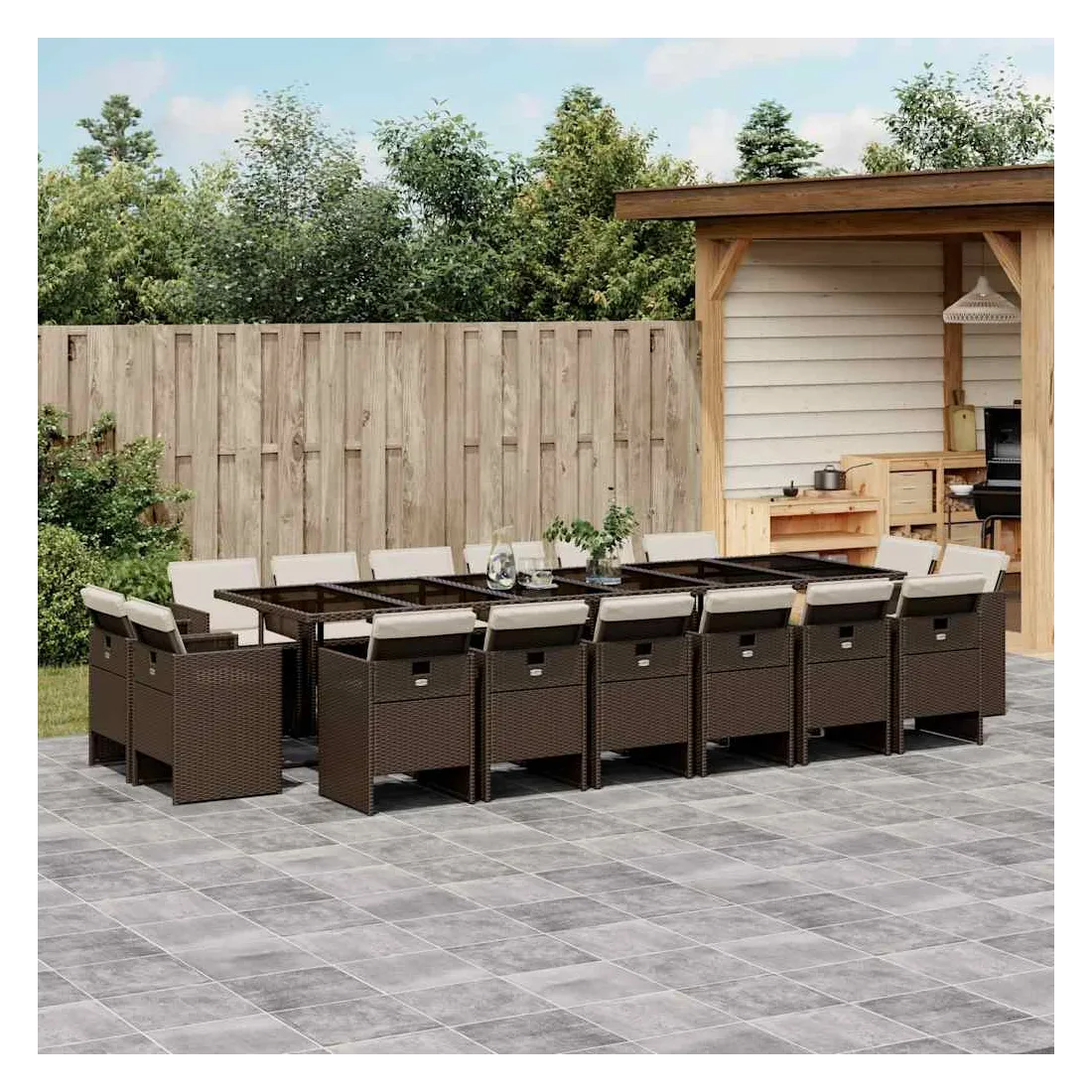 Cet ensemble de salle à manger de jardin est un excellent choix pour les repas en plein air ou pour vous détendre dans le jardin, dans l'arrière-cour ou sur la terrasse. Matériau durable : la résine tressée, également connue sous le nom de poly rotin, est un matériau synthétique solide et nécessitant peu d'entretien qui ressemble au rotin naturel. Il est léger, facile à nettoyer et couramment utilisé pour les meubles d'extérieur en raison de sa durabilité et de ses propriétés de résistance aux intempéries.Rangement compact : ces chaises sont dotées d'un dossier rabattable, ce qui permet de les ranger facilement sous la table. Une fois pliées, elles se rangent parfaitement sous la table, formant un cube peu encombrant. Expérience d'assise confortable : ce mobilier d'extérieur, doté de coussins épais, offre une expérience d'assise confortable.Housse amovible et lavable : ces coussins de siège sont dotés de housses amovibles pour un lavage et un entretien faciles.Dessus en verre : le dessus de la table d'extérieur est fabriqué en verre trempé solide et durable, ce qui le rend facile à nettoyer avec un chiffon humide et ajoute une touche d'élégance à votre espace extérieur. Bon à savoir : Pour que vos meubles d'extérieur restent beaux, nous vous recommandons de les protéger avec une housse imperméable.