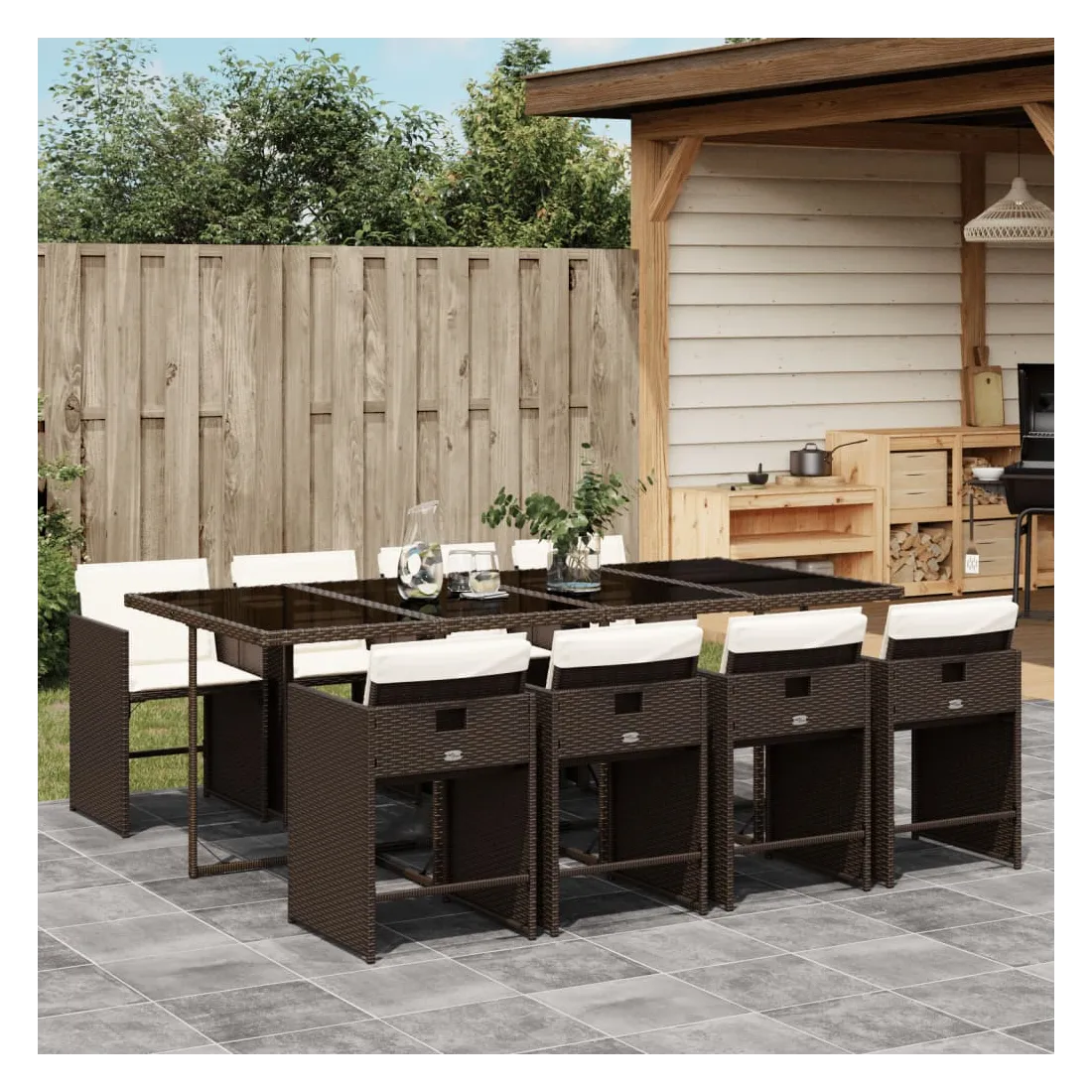 Cet ensemble de salle à manger de jardin est un excellent choix pour les repas en plein air ou pour vous détendre dans le jardin, dans l'arrière-cour ou sur la terrasse. Matériau durable : la résine tressée, également connue sous le nom de poly rotin, est un matériau synthétique solide et nécessitant peu d'entretien qui ressemble au rotin naturel. Il est léger, facile à nettoyer et couramment utilisé pour les meubles d'extérieur en raison de sa durabilité et de ses propriétés de résistance aux intempéries.Rangement compact : ces chaises sont dotées d'un dossier rabattable, ce qui permet de les ranger facilement sous la table. Une fois pliées, elles se rangent parfaitement sous la table, formant un cube peu encombrant.Expérience d'assise confortable : ce mobilier d'extérieur, doté de coussins épais, offre une expérience d'assise confortable.Housse amovible et lavable : ces coussins de siège sont dotés de housses amovibles pour un lavage et un entretien faciles. Les housses de coussin de chaise ont un rabat à l'arrière pour une fixation facile aux chaises.Dessus stable et facile à nettoyer : cette table de jardin est dotée d'un dessus en verre trempé robuste, durable et facile à nettoyer à l'aide d'un chiffon humide. Bon à savoir : Pour que vos meubles d'extérieur restent beaux, nous vous recommandons de les protéger avec une housse imperméable.