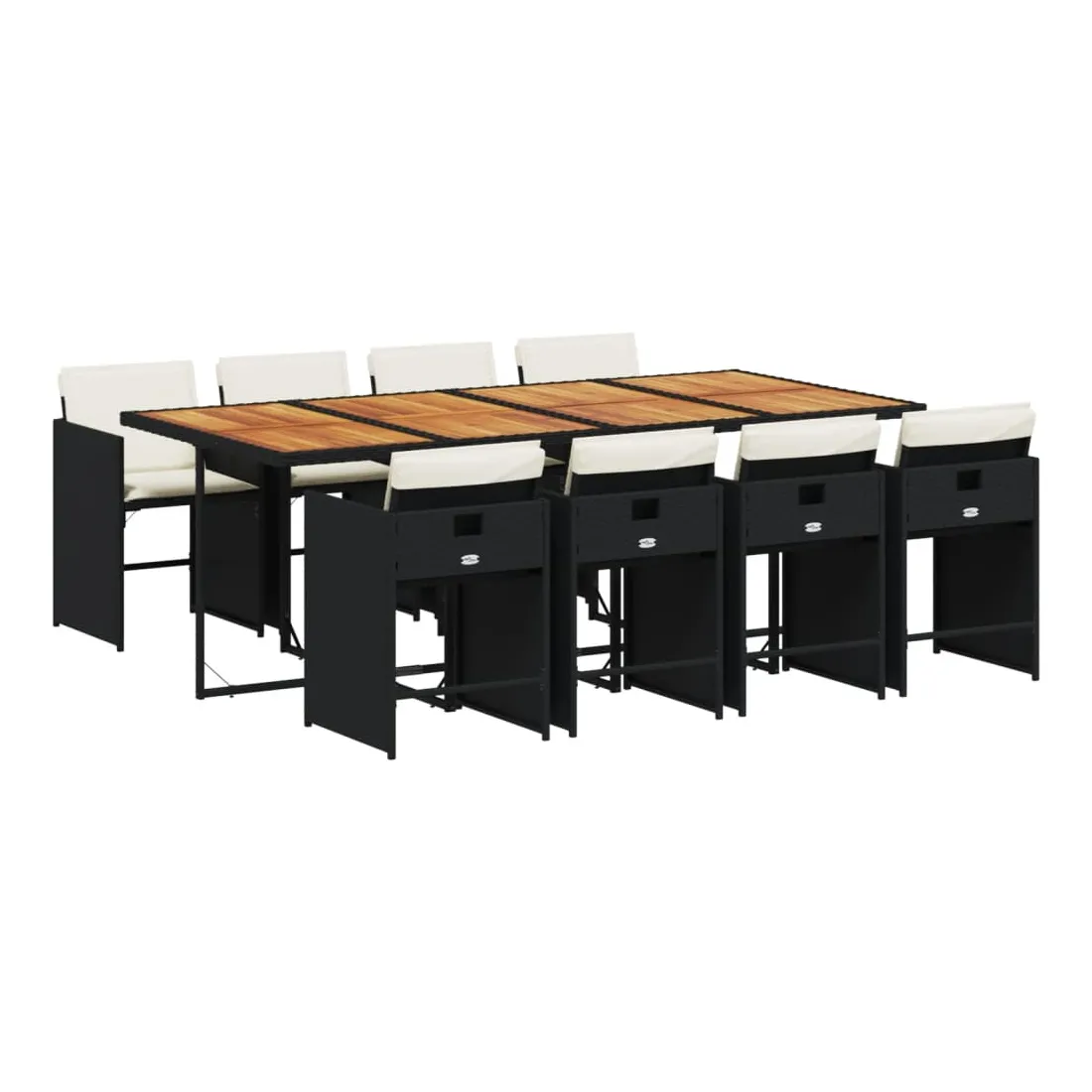 Cet ensemble de salle à manger de jardin est un excellent choix pour les repas en plein air ou pour vous détendre dans le jardin, dans l'arrière-cour ou sur la terrasse. Matériau durable : la résine tressée, également connue sous le nom de poly rotin, est un matériau synthétique solide et nécessitant peu d'entretien qui ressemble au rotin naturel. Il est léger, facile à nettoyer et couramment utilisé pour les meubles d'extérieur en raison de sa durabilité et de ses propriétés de résistance aux intempéries.Rangement compact : ces chaises sont dotées d'un dossier rabattable, ce qui permet de les ranger facilement sous la table. Une fois pliées, elles se rangent parfaitement sous la table, formant un cube peu encombrant.Expérience d'assise confortable : ce mobilier d'extérieur, doté de coussins épais, offre une expérience d'assise confortable.Housse amovible et lavable : ces coussins de siège sont dotés de housses amovibles pour un lavage et un entretien faciles. Les housses de coussin de chaise ont un rabat à l'arrière pour une fixation facile aux chaises.Dessus stable et facile à nettoyer : cette table de jardin a un dessus en bois d'acacia robuste, durable et facile à nettoyer avec un chiffon humide. Bon à savoir : Pour que vos meubles d'extérieur restent beaux, nous vous recommandons de les protéger avec une housse imperméable.