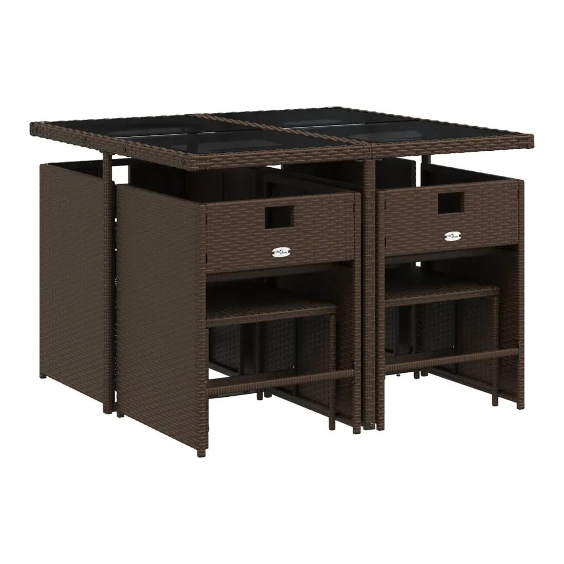 Cet ensemble de salle à manger de jardin est un excellent choix pour les repas en plein air ou pour vous détendre dans le jardin, dans l'arrière-cour ou sur la terrasse. Matériau durable : la résine tressée, également connue sous le nom de poly rotin, est un matériau synthétique solide et nécessitant peu d'entretien qui ressemble au rotin naturel. Il est léger, facile à nettoyer et couramment utilisé pour les meubles d'extérieur en raison de sa durabilité et de ses propriétés de résistance aux intempéries.Rangement compact : ces chaises sont dotées d'un dossier rabattable, ce qui permet de les ranger facilement sous la table. Une fois pliées, elles se rangent parfaitement sous la table, formant un cube peu encombrant. De plus, les tabourets peuvent également être rangés sous les chaises, maximisant encore davantage l'efficacité de l'espace.Expérience d'assise confortable : ce mobilier d'extérieur, doté de coussins épais, offre une expérience d'assise confortable.Housse amovible et lavable : ces coussins de siège sont dotés de housses amovibles pour un lavage et un entretien faciles. Les housses de coussin de chaise ont un rabat à l'arrière pour une fixation facile aux chaises.Dessus stable et facile à nettoyer : cette table de jardin est dotée d'un dessus en verre trempé robuste, durable et facile à nettoyer à l'aide d'un chiffon humide. Bon à savoir : Pour que vos meubles d'extérieur restent beaux, nous vous recommandons de les protéger avec une housse imperméable.