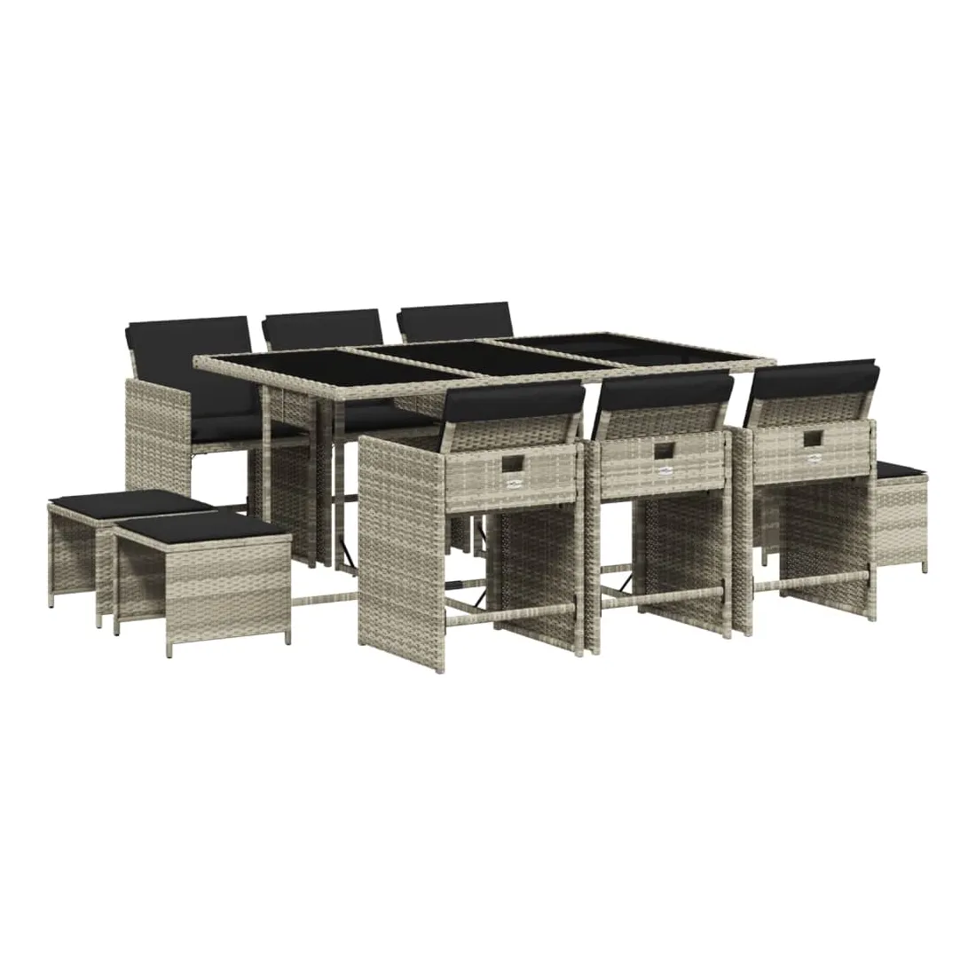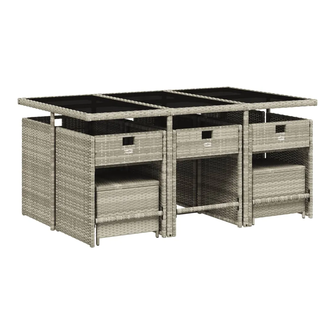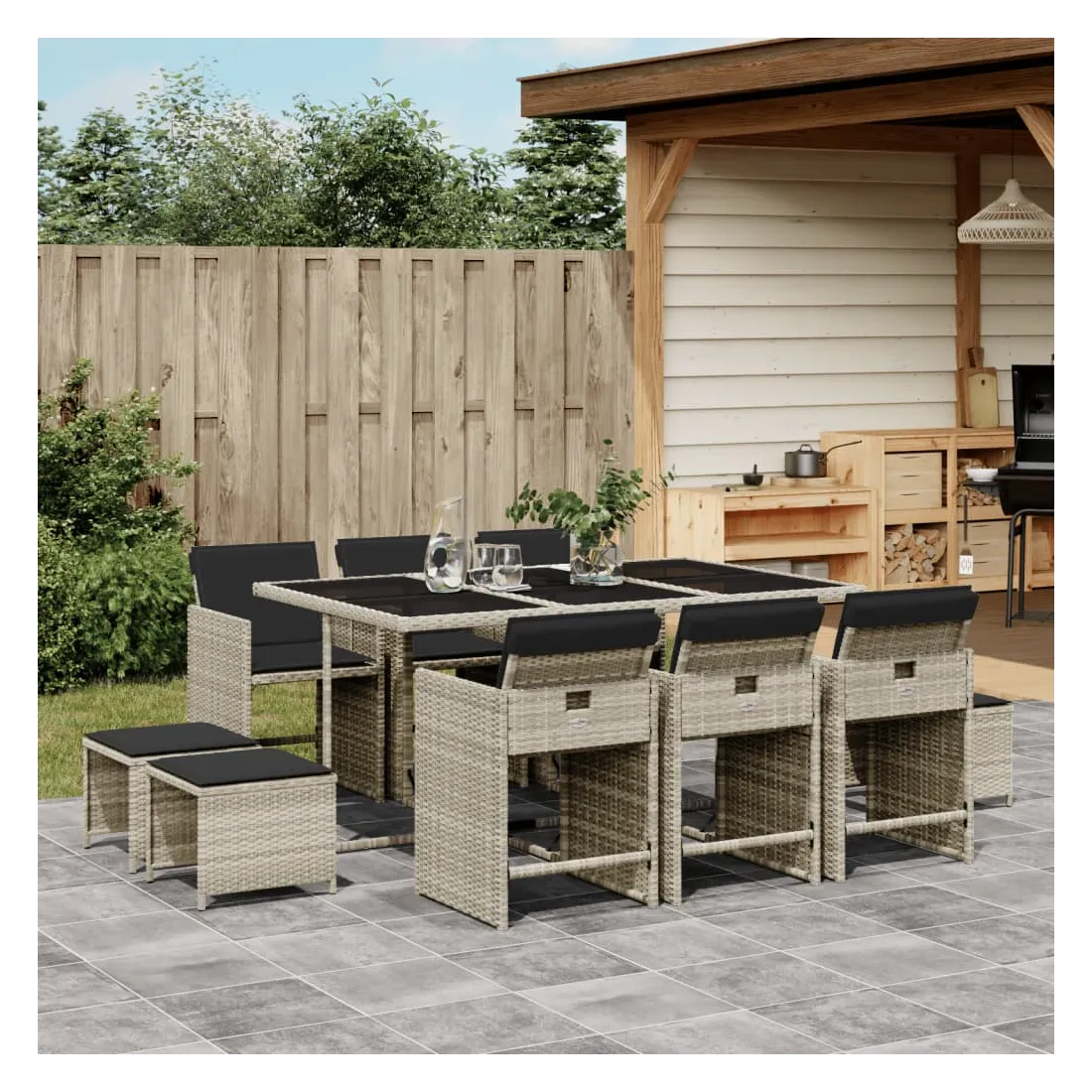 Cet ensemble de salle à manger de jardin est un excellent choix pour les repas en plein air ou pour vous détendre dans le jardin, dans l'arrière-cour ou sur la terrasse. Matériau durable : la résine tressée, également connue sous le nom de poly rotin, est un matériau synthétique solide et nécessitant peu d'entretien qui ressemble au rotin naturel. Il est léger, facile à nettoyer et couramment utilisé pour les meubles d'extérieur en raison de sa durabilité et de ses propriétés de résistance aux intempéries.Rangement compact : ces chaises sont dotées d'un dossier rabattable, ce qui permet de les ranger facilement sous la table. Une fois pliées, elles se rangent parfaitement sous la table, formant un cube peu encombrant. De plus, les tabourets peuvent également être rangés sous les chaises, maximisant encore davantage l'efficacité de l'espace.Expérience d'assise confortable : ce mobilier d'extérieur, doté de coussins épais, offre une expérience d'assise confortable.Housse amovible et lavable : ces coussins de siège sont dotés de housses amovibles pour un lavage et un entretien faciles. Les housses de coussin de chaise ont un rabat à l'arrière pour une fixation facile aux chaises.Dessus stable et facile à nettoyer : cette table de jardin est dotée d'un dessus en verre trempé robuste, durable et facile à nettoyer à l'aide d'un chiffon humide. Bon à savoir : Pour que vos meubles d'extérieur restent beaux, nous vous recommandons de les protéger avec une housse imperméable.