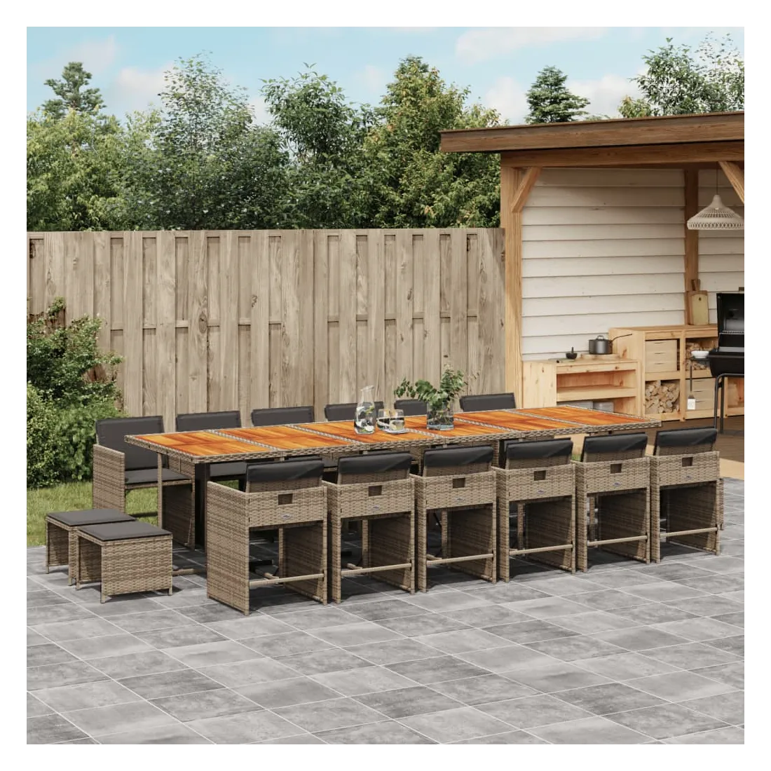 - Matériau : résine tressée, acier enduit de poudre, bois d'acacia massif
